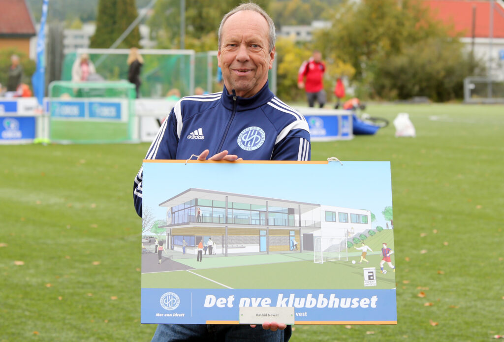 Klubbhuset på Høybråten brant ned i 2020. Det er nå reist et nytt med flotte og moderne fasiliteter som klubben, beboere og nærmiljø kan ha glede av – dette også takket være en enorm innsats fra ikke minst Jon.