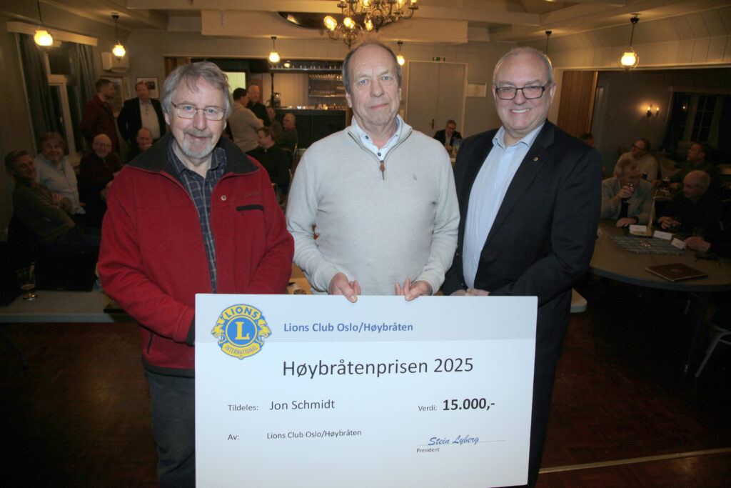 NB – vanligvis blir prisen delt ut på Høybråten Lions sitt julebord i desember. Men siden Jon var bortreist på det tidspunktet, fant overrekkelsen sted på det første møtet i år – og som vanlig på Vardeheim. Ellers er det en rullerende komité når det gjelder prisen. Den skal bestå av nåværende president og de to foregående presidenter med forrige president som leder.