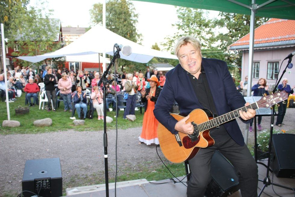ROCKET ÅRVOLL GÅRD: Jørn Hoel var i strålende humør og trollbandt publikum med både vitser og god musikk. Foto:Bilde 1 av 1