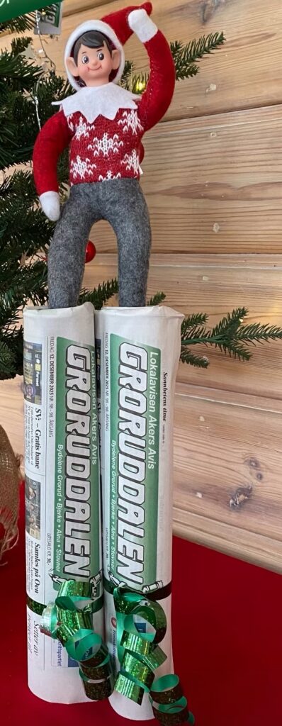 Midt i dette har rampenissen vært på jobb igjen. Denne gangen hadde den rigget seg til oppå to sammenrullede aviser – som om den hadde funnet sin egen papirtrone og var fornøyd med det. Små påfunn som minner oss om at desember ikke bare er lister og logistikk.