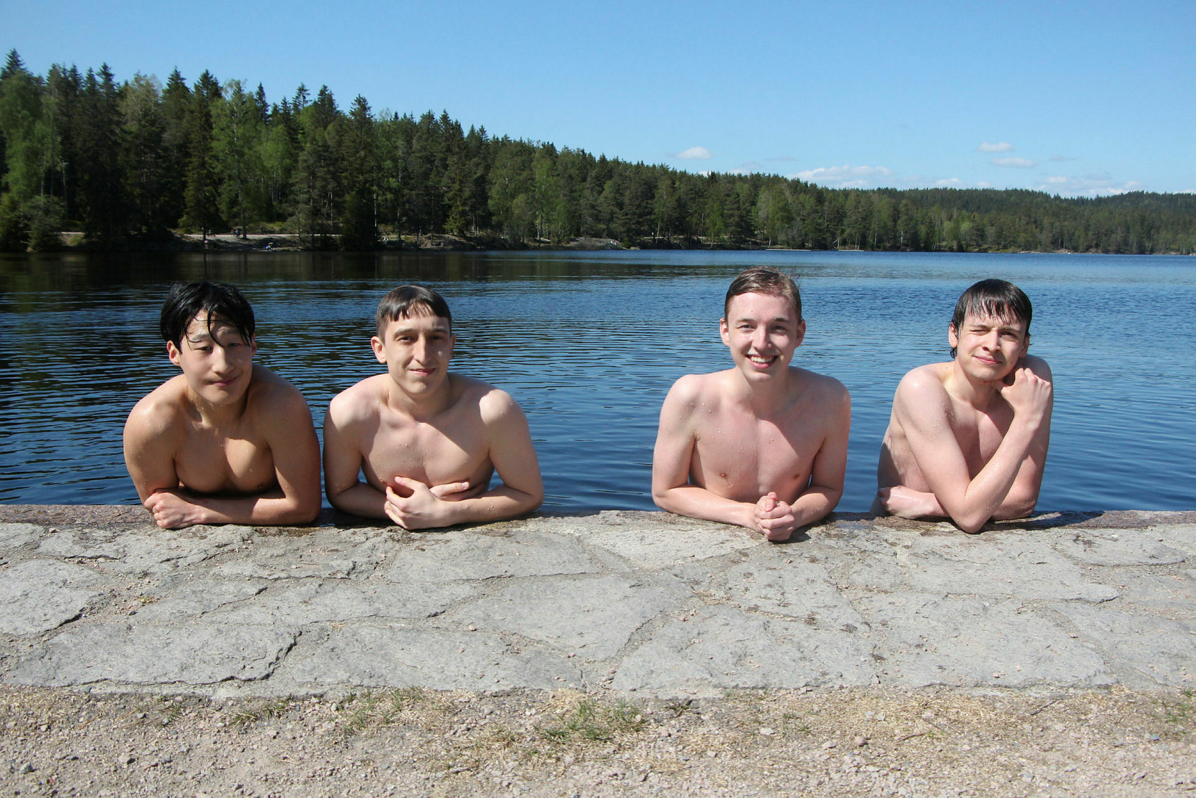 Kompisgjengen Adrian Grøvslien, Simen Willersrud, Filip Nordseth, Eirik Stokker Aksdal fra Jessheim og omegn var på badesafari i Lillomarka. Kompisgjengen hadde allerede badet tidligere på dagen, men tok gladelig et stup til uti vannet på oppfordring fra avisa.