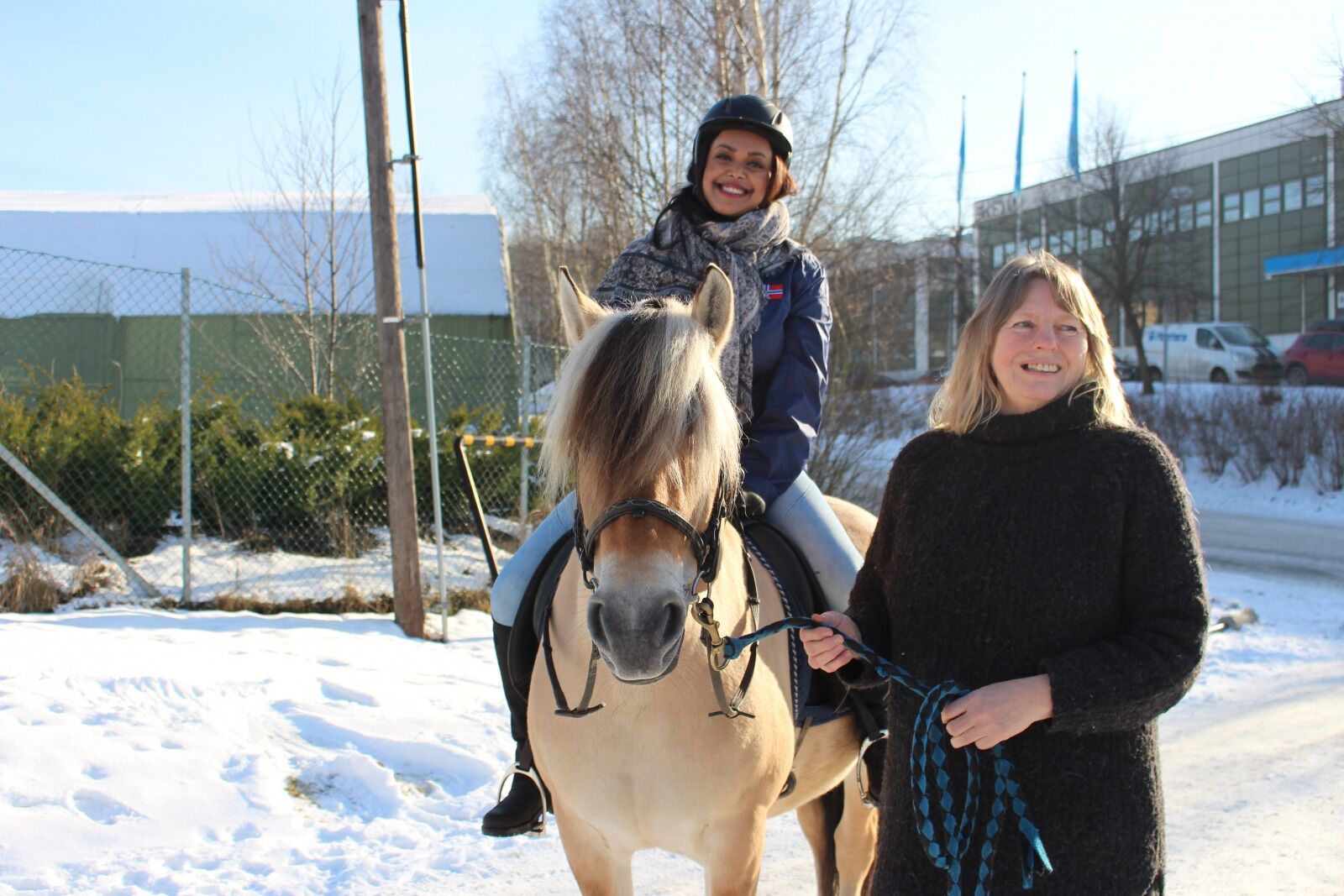 PÅ HESTERYGGEN: Varaordfører Khamshajiny Gunaratnam stilte sporty opp hos Alna ridesenter. Her med daglig leder på ridesenteret Lene Kragh. Foto: Rikke StenerBilde 1 av 1 Kamzy saler opp Rikke Stener Publisert 15. feb 17 kl. 09:52 Del på sosiale medier Del Facebook Twitter E-post Abonnement