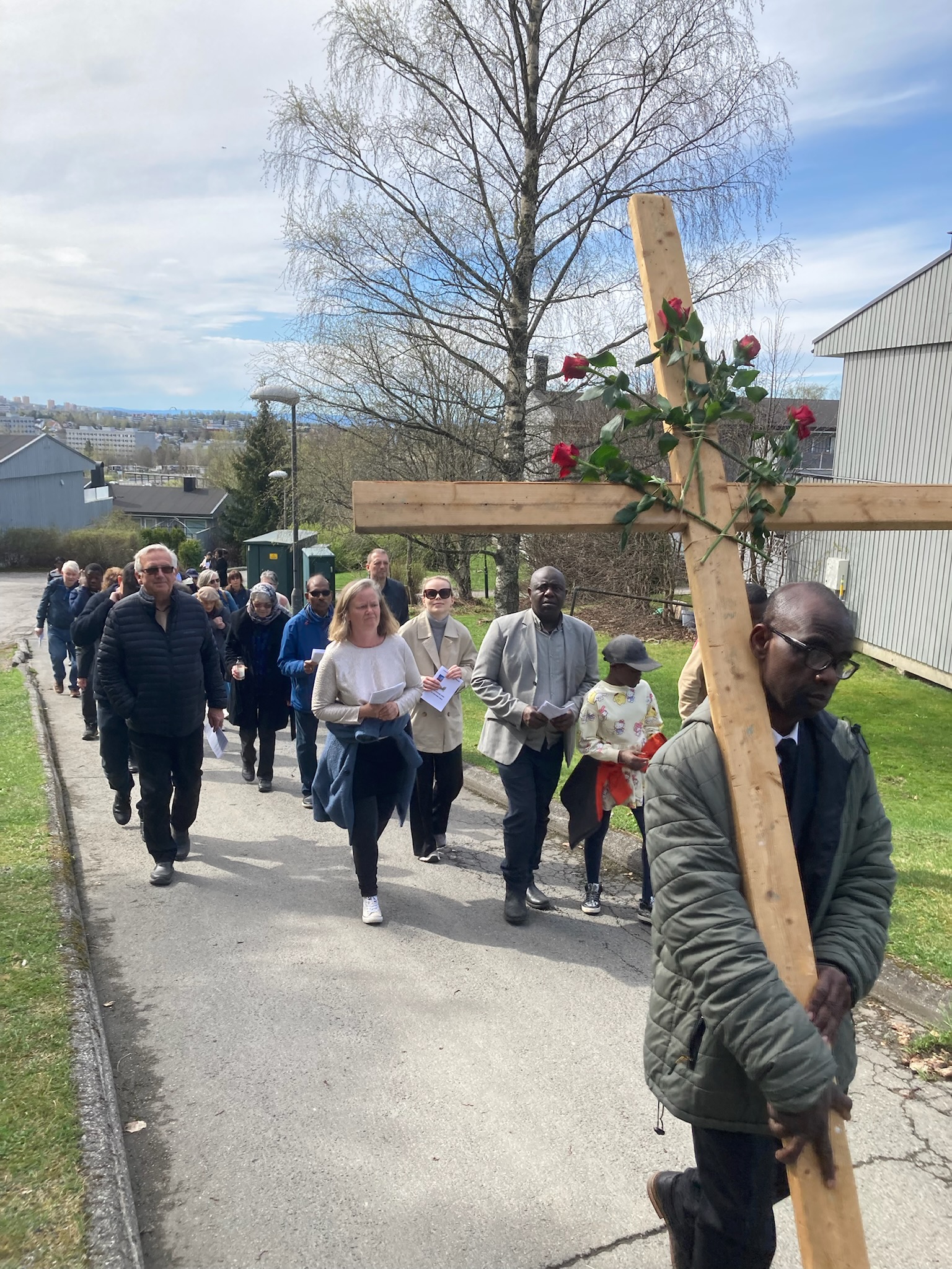 Etter gudstjenesten i Fossum kirke vandret menigheten med et stort kors gjennom bydelen til Stovner kirke. Underveis stanset man opp ved ulike representative steder, leste et bibelord, inviterte til ettertanke og ba for dem som på en særlig måte hadde tilknytning til et slikt sted. Under vandringen sang man salmer.