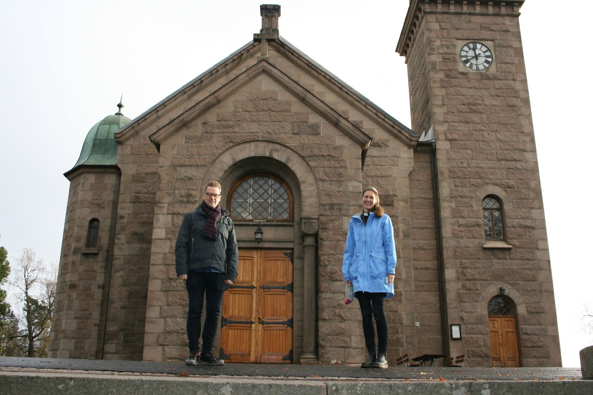 Prost i Groruddalen, Øyvind Stabrun, og sokneprest Tone Marie Falch i Grorud menighet møter avisa utenfor Grorud kirke for å informere om at det ikke vil være gudstjenester i tiden fremover.