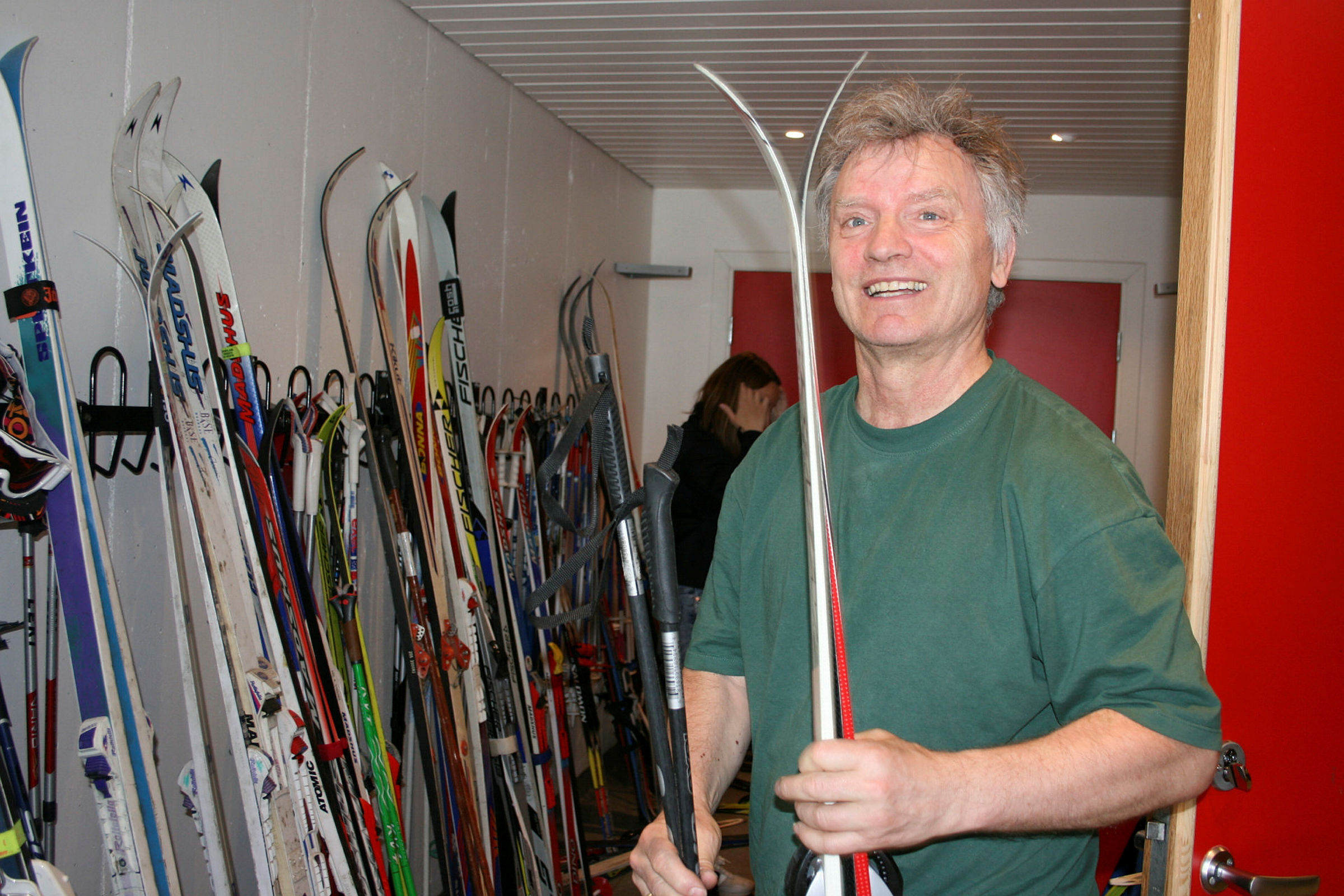 Kristian Næss var en av mange som brukte litt av helgen på å besøke Stasjonsfjellet skole, der Høybråten skoles musikkorps arrangerte loppemarked. I ski-avdelingen fant han mange skatter til sin nye gjenbruksbutikk.