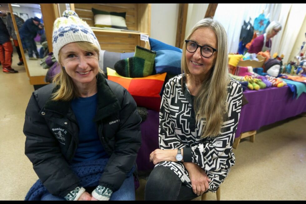 IMPONERT HUSFLIDSKONSULENT: Kristine Fornes, husflidskonsulent i Oslo fylkeshusflidslag av Norges Husflidslag (t.v.) tok turen til låven på Øvre Fossum gård og lot seg begeistre - også av det faktum at Østre Aker Husflidslag nå jobber målrettet med å få med seg barn og ungdom inn i den spennende husflidsverdenen. Kari Jarrett, leder av markedskomiteen, kunne fortelle at årets utgave av husflidsmarkedet ble nok en suksess. Foto:Bilde 1 av 3