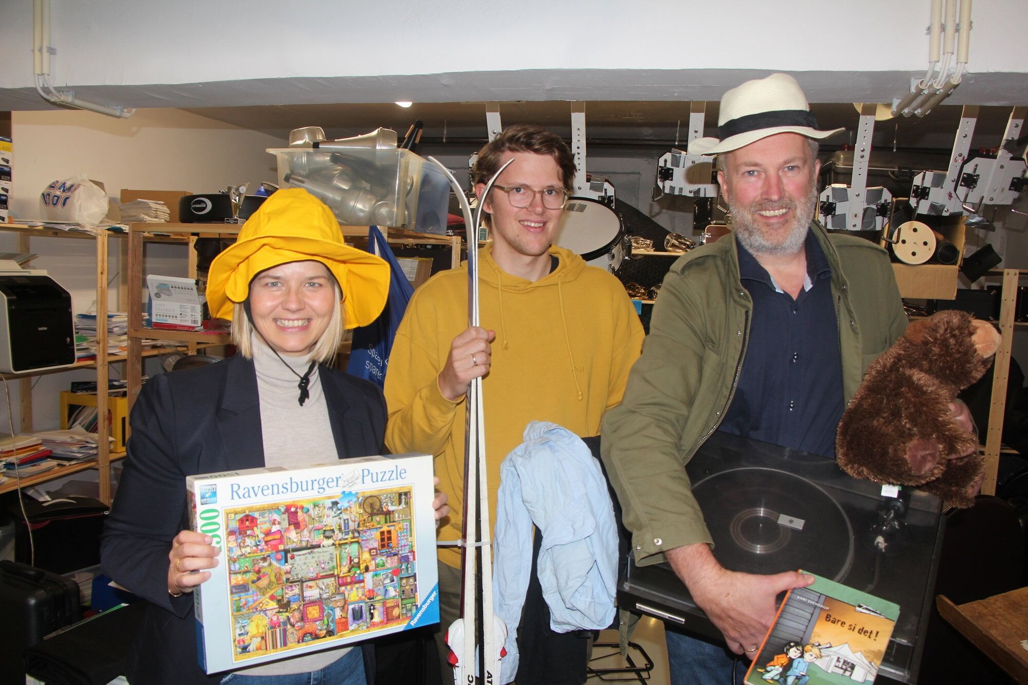 HASLE: Kunnskapsminister Guri Melby var torsdag på Hasle skole. Der møtte hun Eirik Kristensen (t.v) i Oslo musikkråd og loppegeneral i Hasle skolekorps Finn Erlend Ødegård. Denne uka har Norsk musikkråd og Musikkens studieforbund avholdt kampanjen «Musikklivets uke» med hensikt å kaste lys over viktigheten med frivllighet i musikken. Loppegeneral Ødegård vet alt om frivillighet. Hasle skolekorps sine to årlige loppemarkeder er nemlig et resultat av 8.000 timer med frivillig arbeid. Foto:Bilde 1 av 4