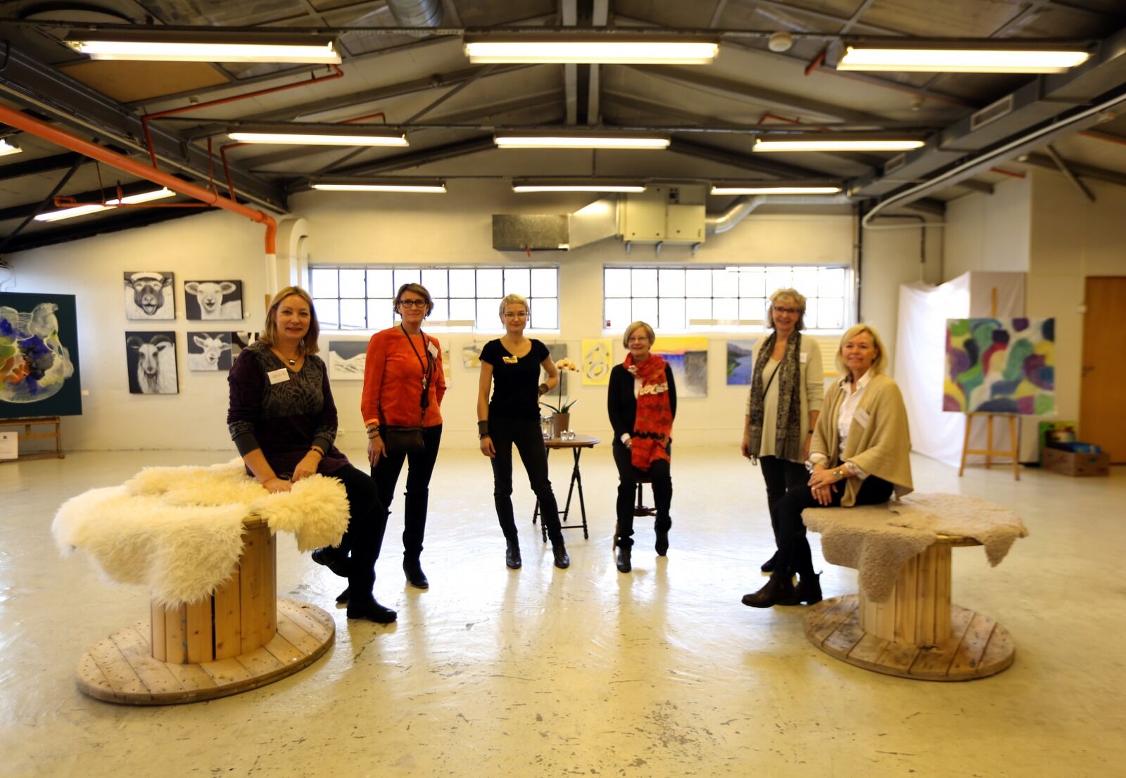 SPENTE KUNSTNERINNER: Kunstnerne i atelierfellesskapet K19 hadde laget en flott ramme rundt utstillingen i de helt spesielle gamle industrilokalene til STK på Økern. Selv var de like nervøse som alltid ved åpningen av en ny kunstutstilling, men publikum strømmet til under den første visningshelgen. Kommende helg kan Heidi Asdahl (f. v), Hanne Nicolaysen, Dagmara Pater, Karen ørensen, Ingeborg Mari Helgeland og Inger H. Sandberg Seland ønske velkommen igjen. Da vil også Wenda Røe og Maj-Gret Gaupås være til stede. Foto:Bilde 1 av 1