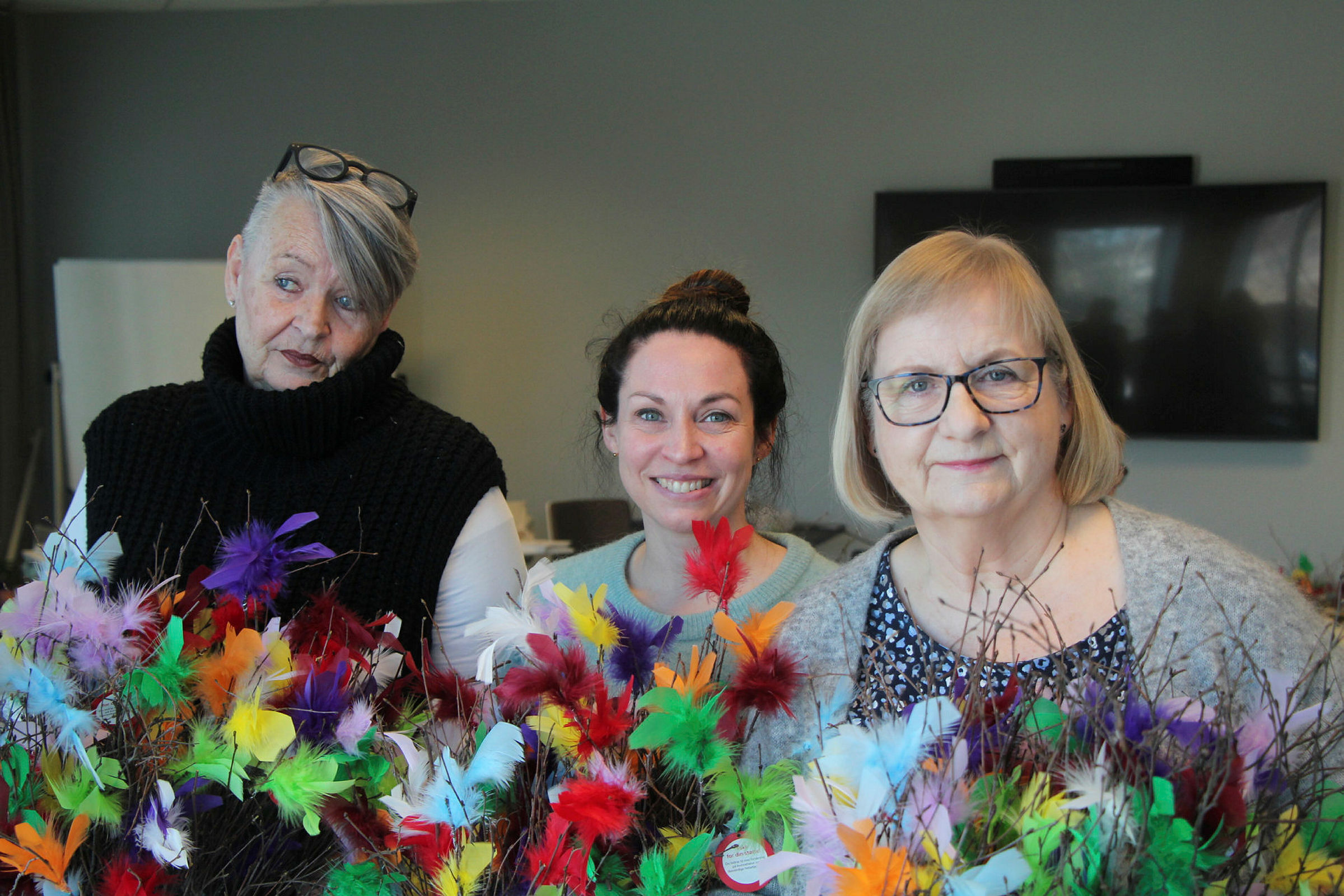 FASTELAVNSRIS: Siv Eithun Petersen (t.h) er sammen med Marthe Kristin Nereng og Vigdis Beate Broberg. For dem er riset en viktig tradisjon i Sanitetsforeningens historie. Foto: Mina WathneBilde 1 av 1