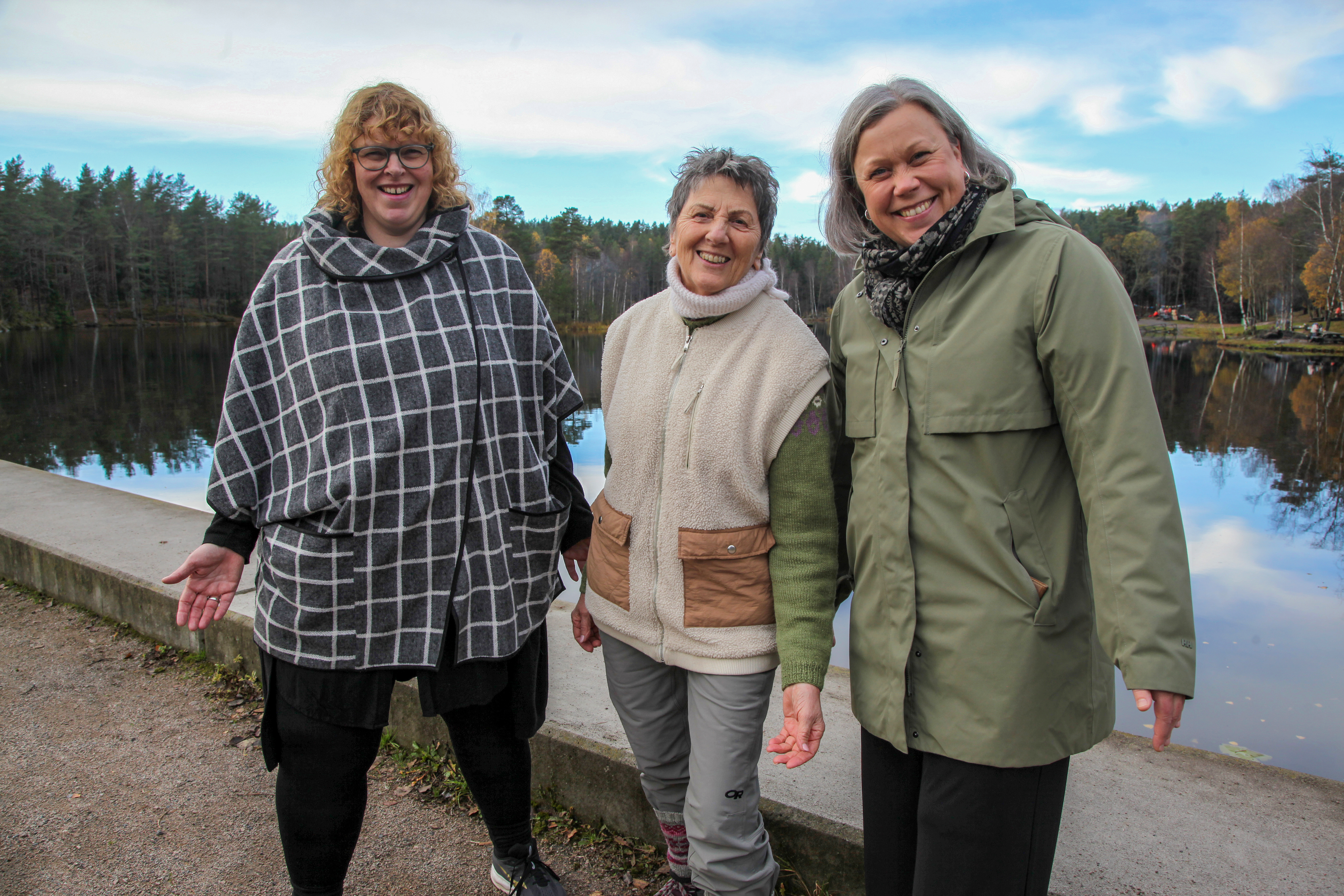 SYNGENDE OPPFORDRING: Pia Lang-Holmen (f.v.), Anne Mari R. Nyhuus og Gunhild R. Farstad bor i samme nabolag i Ammerudskogen og synger sammen i Grorud kirkes kammerkor. Nå oppfordrer de deg til å komme og høre Brahms' rekviem i Grorud kirke - et av verdenshistoriens største musikalske verker. FOTO: Rolf E. Wulff