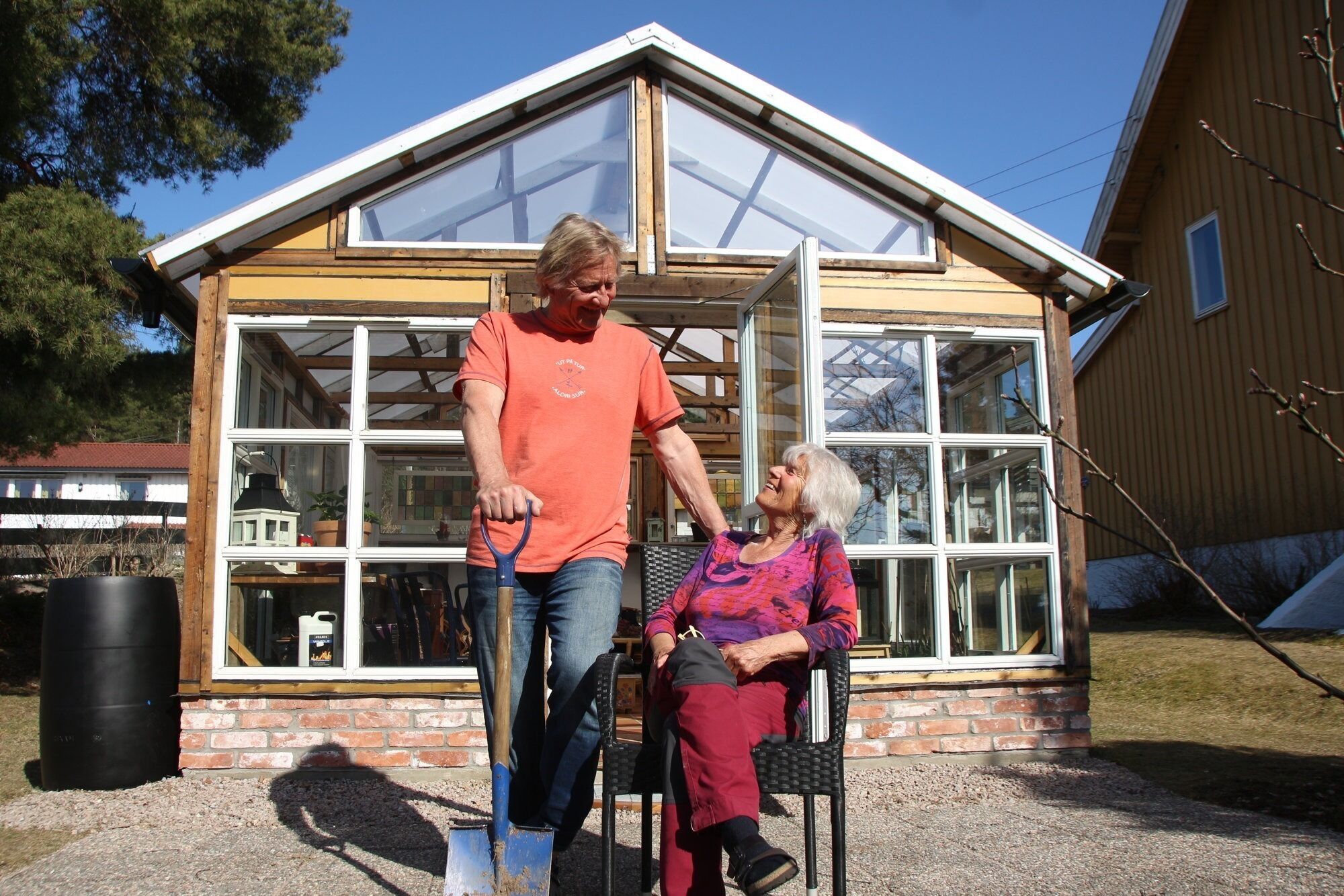 En storfornøyd drivhusarkitekt ser opp på en like stolt byggmester når hygge- og drivhuset på Mamrelund endelig står ferdig. Foto:Bilde 1 av 1 Stovner plante- og vinhus: Lagde drivhus i gjenbrukets ånd Ørjan Brage Publisert 25. apr 21 kl. 07:00 Del på sosiale medier Del Facebook Twitter E-post Nyhetsbrev Facebook Instagram Abonnement