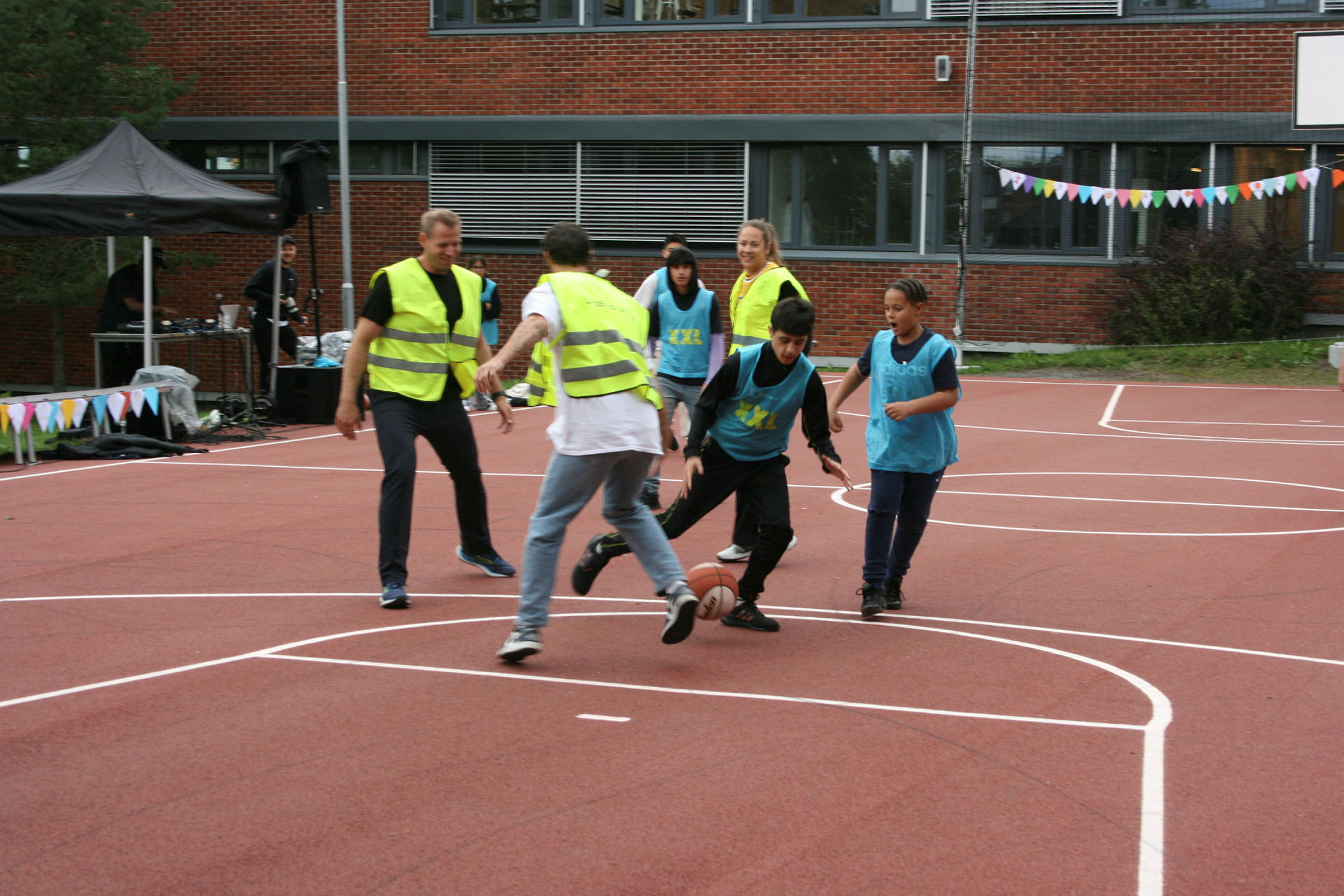 INTENS KAMP: Elevene i blått i angrep mot lærerne under den første av mange dueller på den nye basketbanen. Foto: Caroline HammerBilde 1 av 1 Lærere mot elever da Linderuds basketbane ble åpnet Caroline Hammer Publisert 8. sep 22 kl. 09:11 Del på sosiale medier Del Facebook Twitter E-post Abonnement
