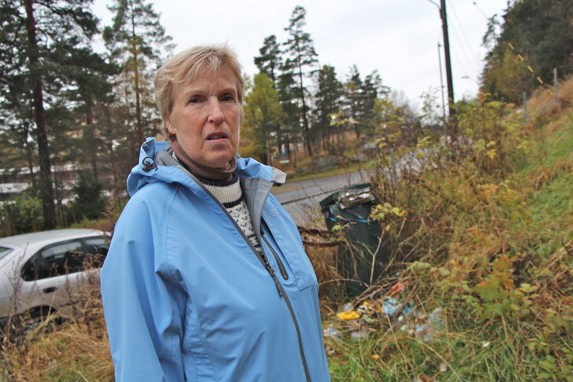 Oddbjørg Rabben bor på Røverkollen og går tur med hunden til marka hver dag. Nå har hun sett seg lei på forsøpling langs marka-veiene og ber folk skjerpe seg.