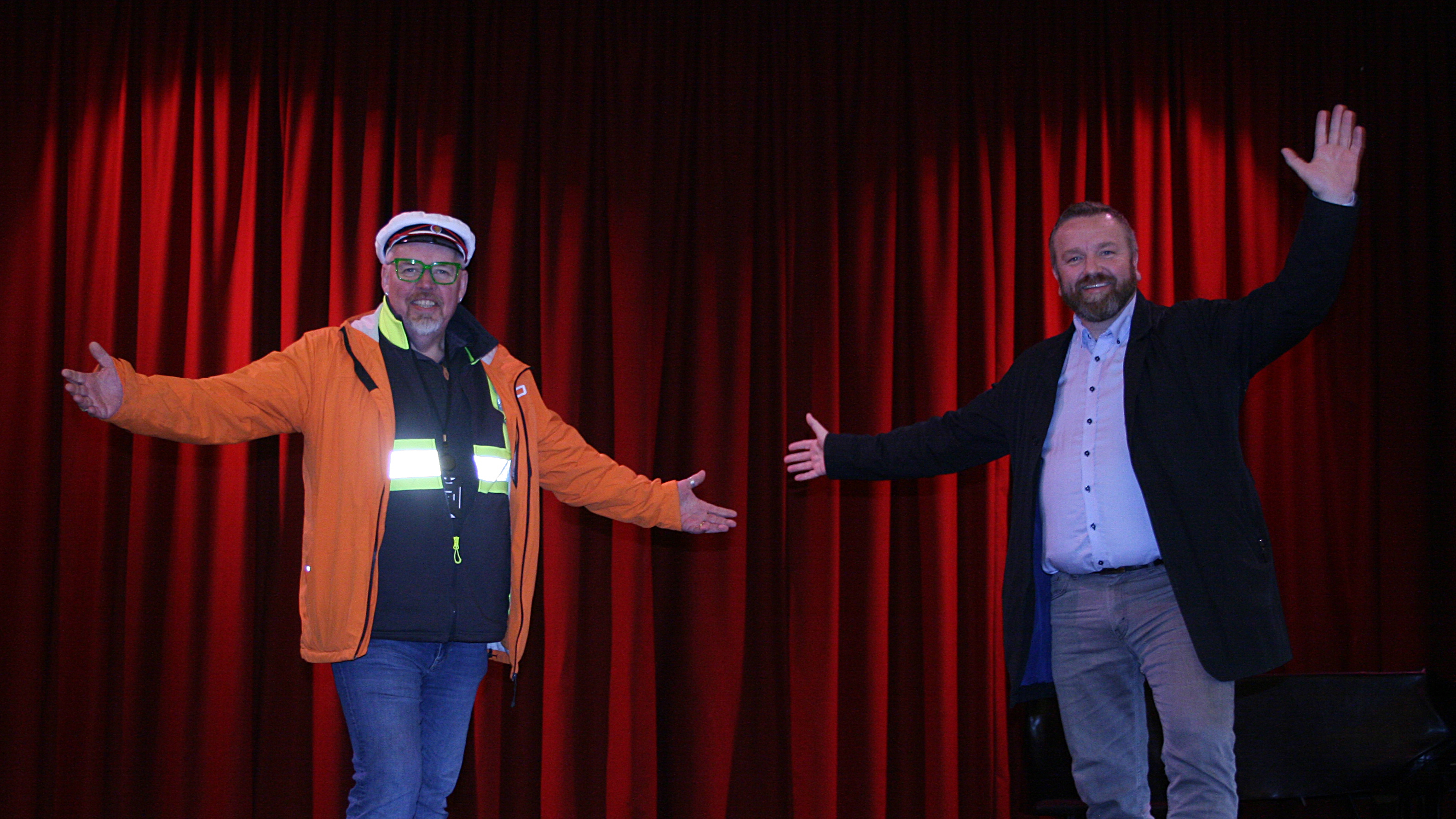 HER SKAL DET SKJE: Bjørn Lindblom (t.v.) og Anders Røberg-Larsen har varmet opp sangstemmene og gleder seg nå til å samle folket til en skikkelig helaften.