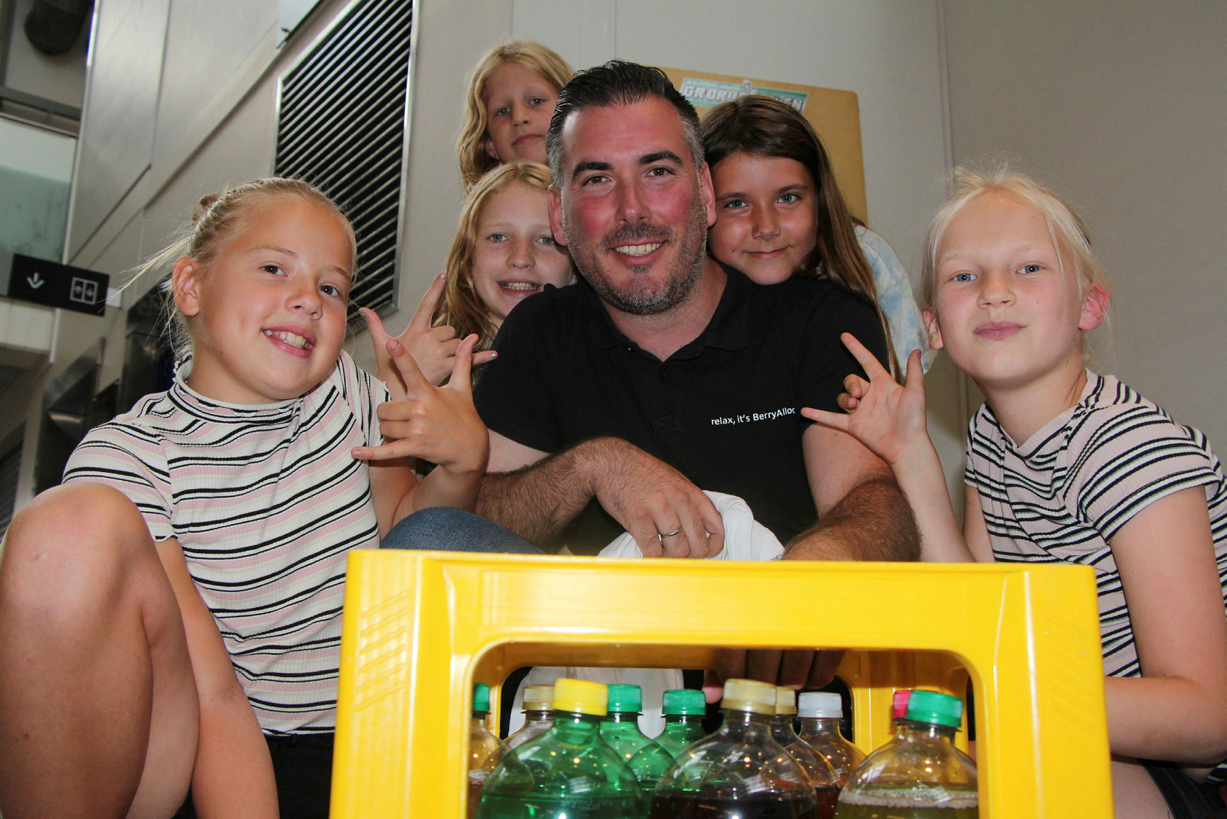 EN TIL JOBBEN, MANGE TIL FEIRINGEN: Øyvind Pedersen fra Lindeberg viste muskler i debuten og sikret bruskassa på Romsås. Her med dattera Line på pappas skulder, og Lines venner. Foto: Sindre Veum ApnesethBilde 1 av 2