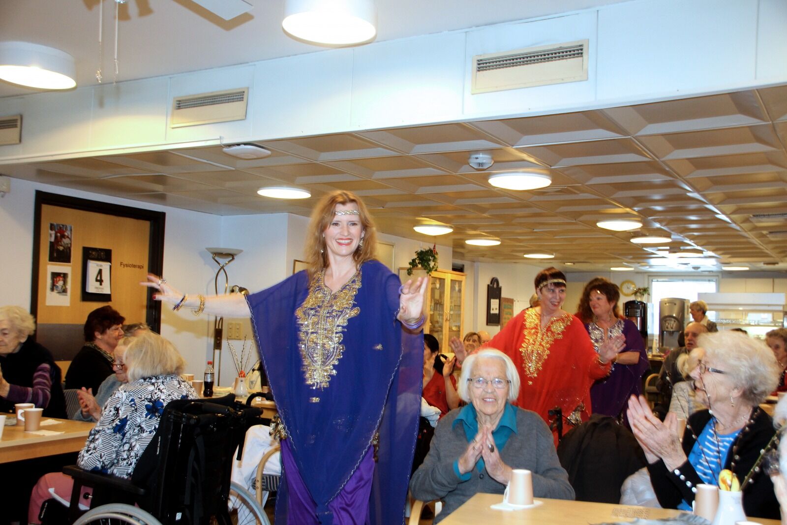 «Vanitas juveler» spritet opp stemningen på Furuset sykehjem med magedans. De sto for underholdningen på kantinefesten. Flere av beboerne ble bedt opp til dans.