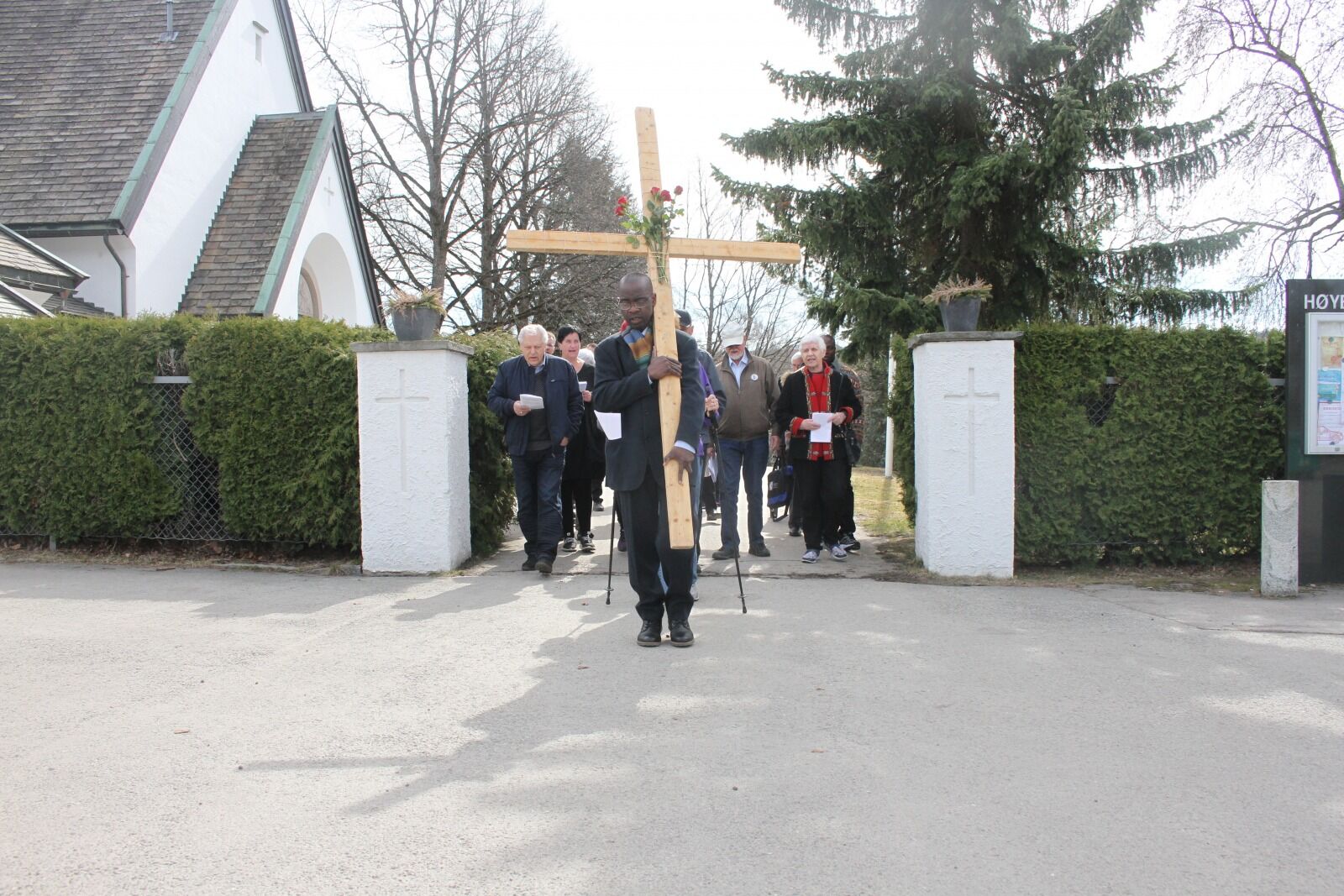 Korsvandringen er en lang og stolt tradisjon i Høybråten, Fossum og Stovner menighet, og konseptet er like enkelt som det er hyggelig. Korset løftes ut i gatene og bæres fra en kirke til en annen. Det varierer fra år til år hvilke kirker det dreier seg om, men i år gikk korsvandringen fra kirka på Høybråten og bort til Stovner kirke. Og dagen startet på Høybråten med gudstjeneste med prest Elin Lunde. I moderne tider er påsken blitt en høytid der nordmenn ferierer på fjellet og hytta, men i kristen sammenheng er særlig langfredag en mørk dag med pinelsen og korsfestelsen av Jesus Kristus. Etter både salmer, musikk, prekener og Herrens bønn var det duket for dagens høydepunkt: korsvandringen. Vandringen innebærer ikke bare å gå fra A til B, men symboliserer også samhold på tvers av trossamfunn og etnisitet. Både Stovner Pinsemenighet og det ghanesiske trossamfunnet Presbyterian-Methodist Church deltok på vandringen som hadde 13 «holdepunkter».