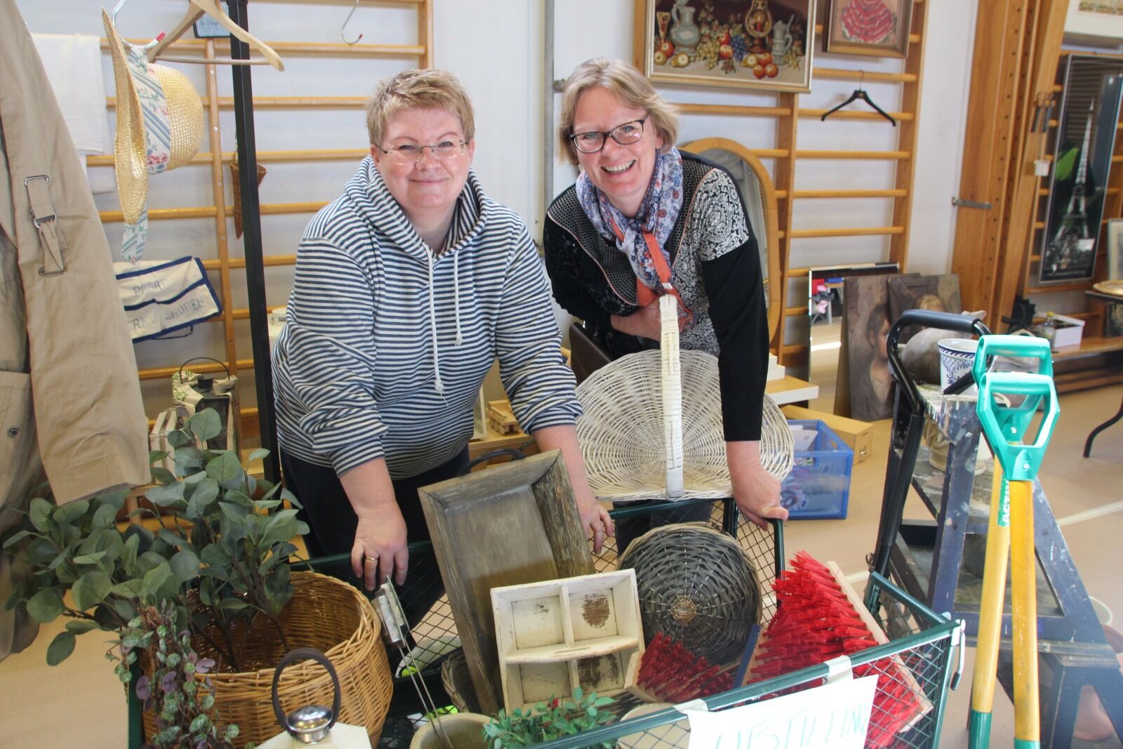 BLITT VAREMERKE: Lindebergskolenes musikkorps setter opp en utstilling som passer årstiden på sine loppemarked. Denne gangen har korpsmamma Marianne Slåen og loppegeneral Ingunn Gjerstad hatt fokus på hage og veranda. Foto:Bilde 1 av 1