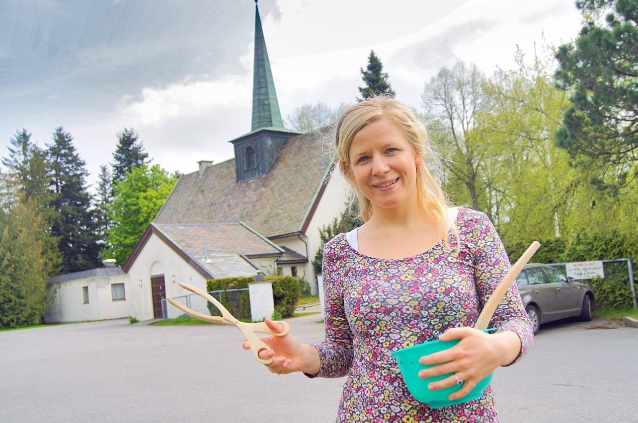 Diakonvikar i Høybraten menighet, Karen Elisabeth Dahl, inviterer alle som vil komme til middag i menighetshuset en gang i maneden.