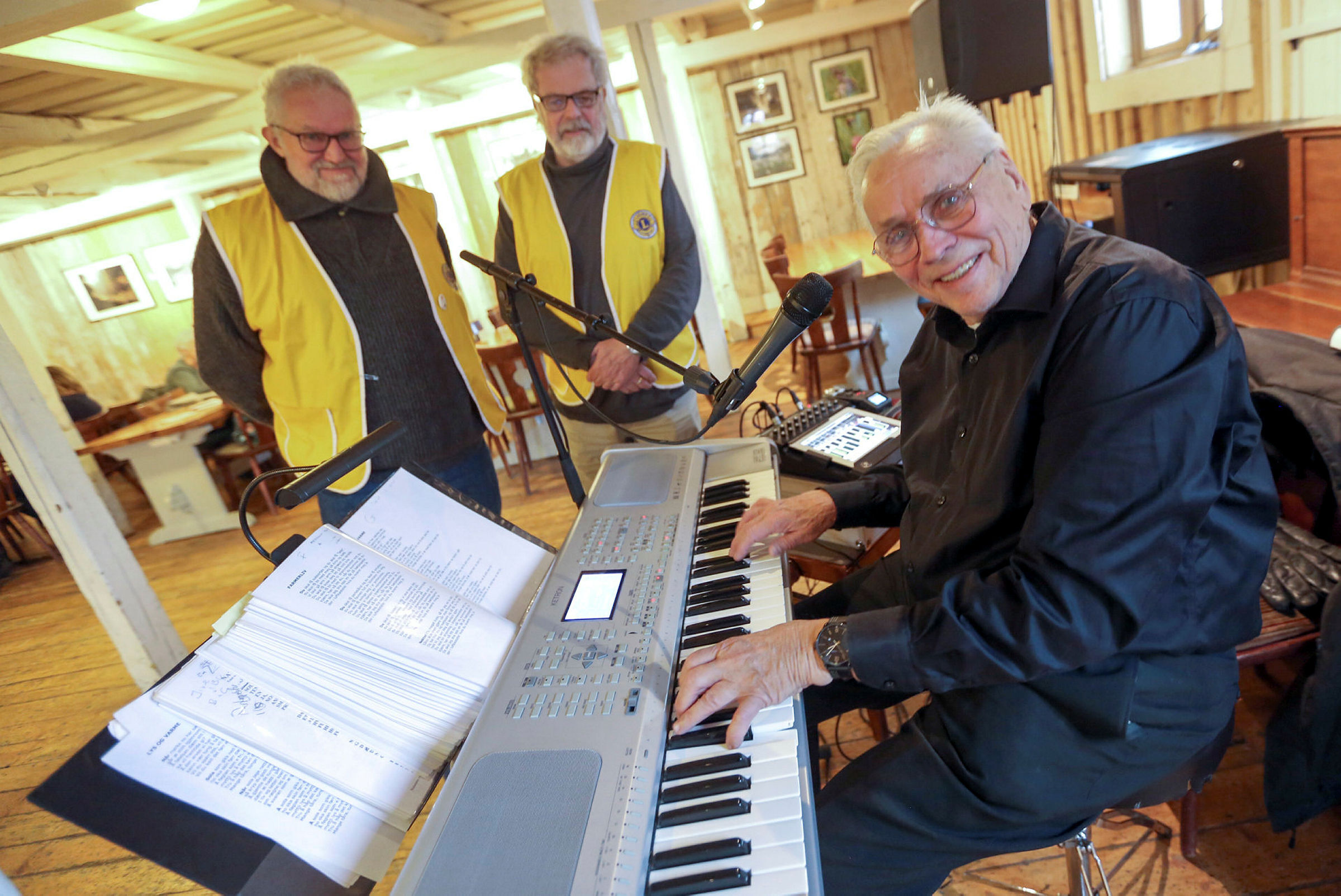 – Topp stemning siden vi begynte. Allsang og musikk som faller i smak for denne aldersgruppen, konstaterer Trond Eriksen i Bjerke Lions.