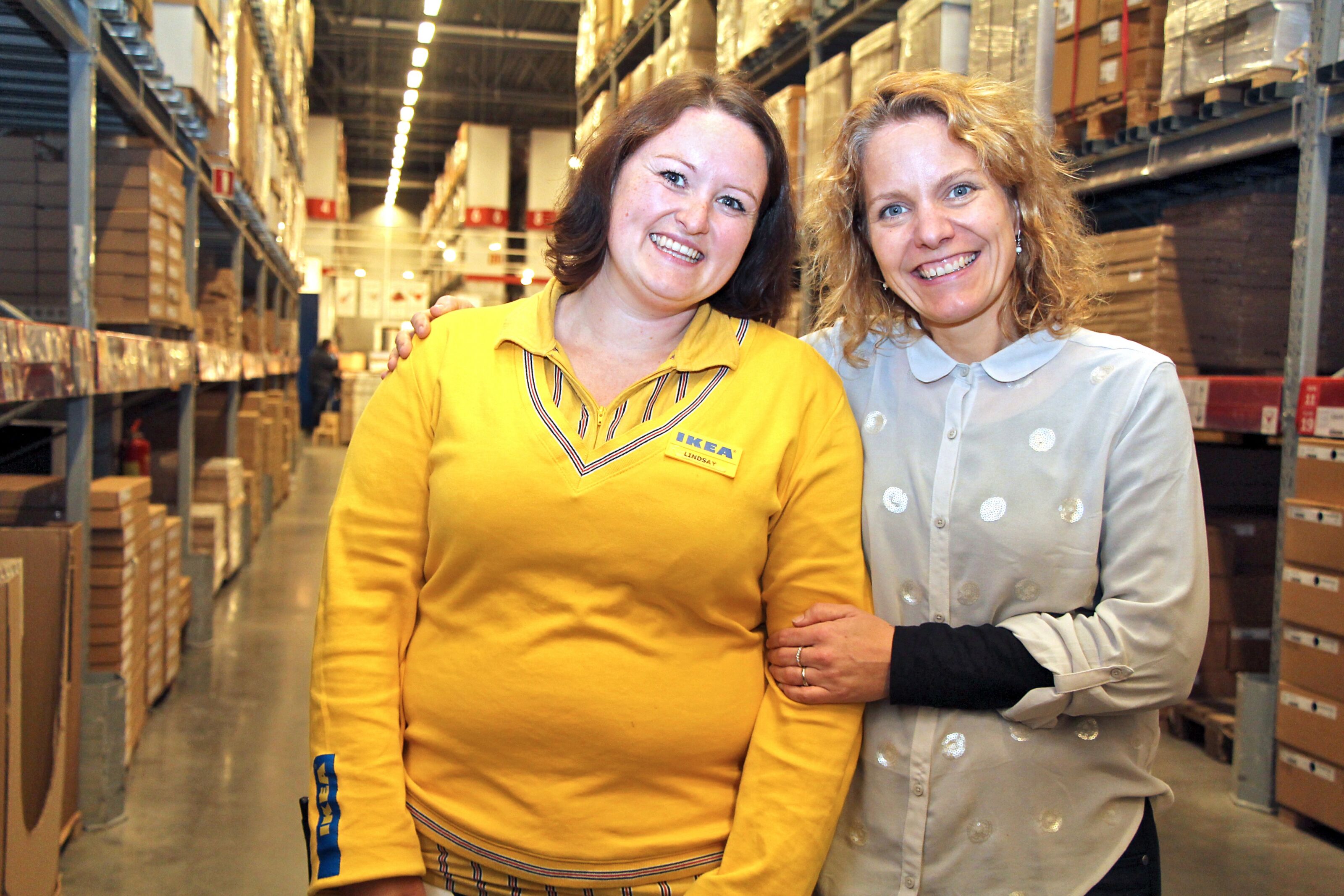 ÆREFULL OPPGAVE: Høybråten-jenta Lindsay Blake (t.v.) elsker å jobbe på IKEA Furuset. Nå skal hun reise på besøk til to flyktningeleirer i Jordan sammen med IKEA foundation og FNs høykommisær for flyktninger. Hun får ros av leder for bærekraft, Nina Schefte. Foto:Bilde 1 av 1