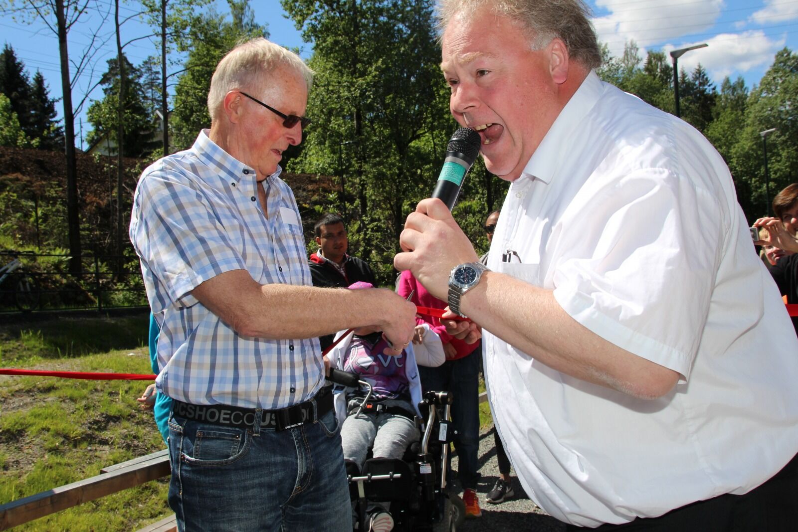 IVRIG: Byråd Bård Folke Fredriksen (H) sørger for å fyre opp publikum mens BU-leder Karl P. Olsen (Ap) klipper snora. Foto:Bilde 1 av 1 Nå er «Bygger’n» åpnet Kenneth Fossheim Publisert 20. jun 15 kl. 16:00 Del på sosiale medier Del Facebook Twitter E-post Abonnement