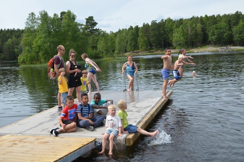 Nå hopper de i vannet fra brygga