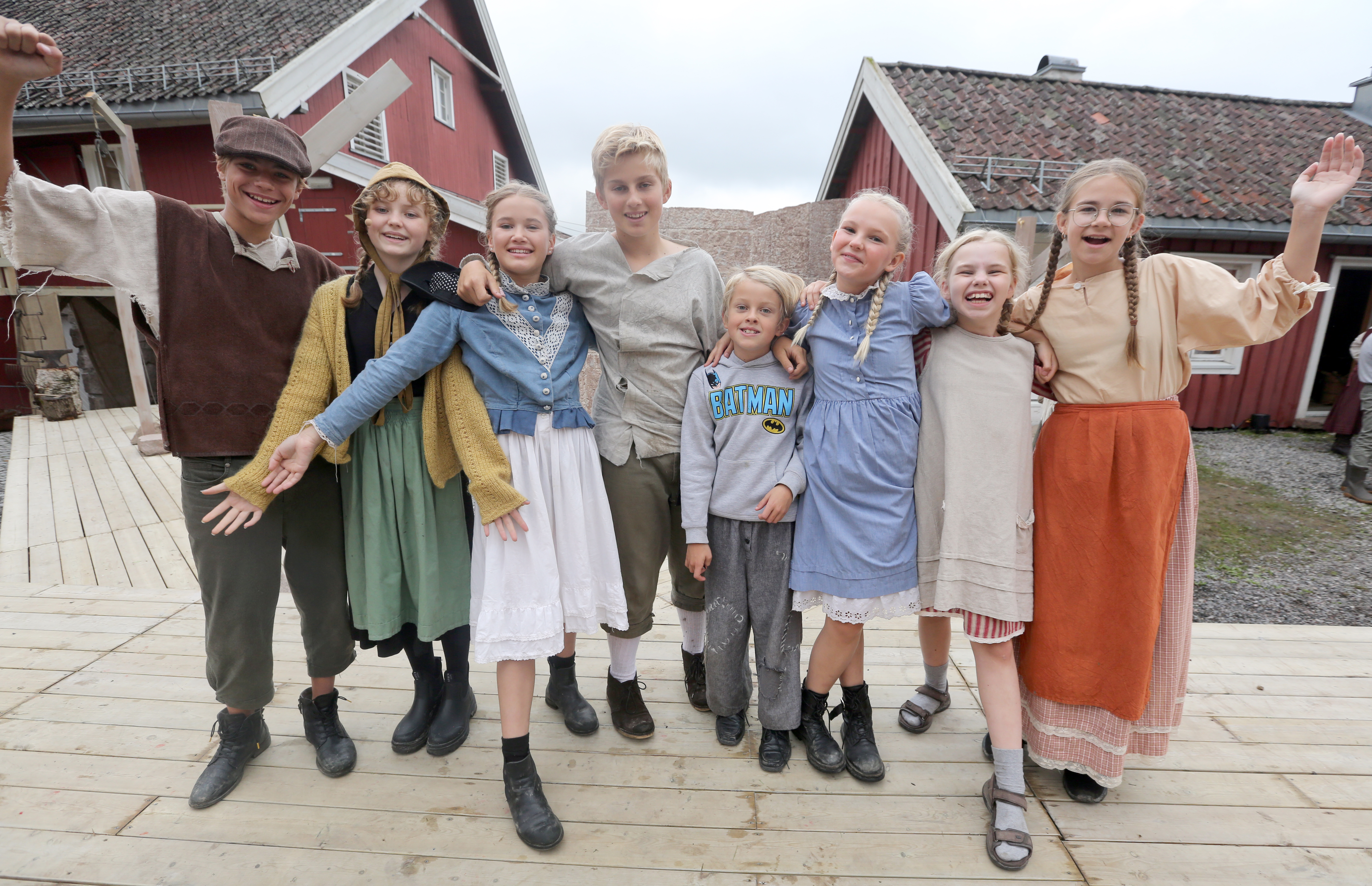 UNGE SKUESPILLERTALENTER: Heine (13, f.v.), Astrid (11), Alma (12), Johannes (13), Tobias (8) (tre søsken fra Rødtvet), Alisandra (12), Savannah (10) og Nellie (13) gjorde en fenomenal innsats og har fått en opplevelse for livet. FOTO: Rolf E. WulffBilde 1 av 17