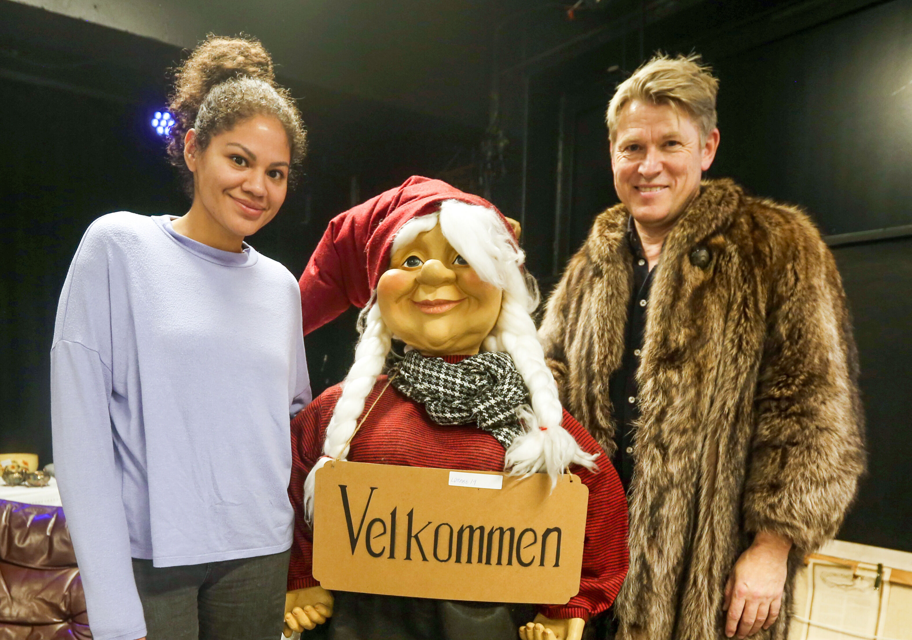 Yessenia La Valle Pineda sikret seg en annerledes «nissemor» som skal stå ved siden av årets juletre i stua. Sverre Gunnar Haga gjennomførte oppgaven som auksjonarius kledd i skikkelig pels - som senere også ble auksjonert bort. Foto: Rolf E. WulffBilde 1 av 1