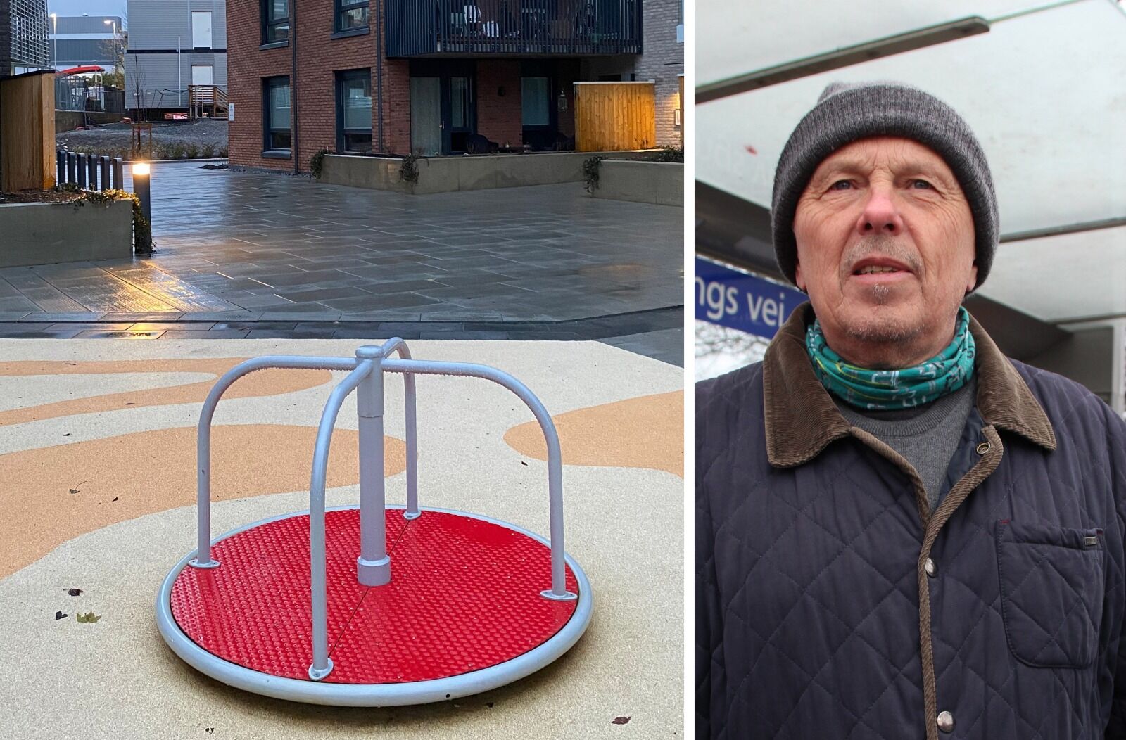 Jeg forvillet meg inn i et av de nye byggefeltene på Vollebekk her om dagen, og kom over noen som trolig er ment å være en slags lekeplass. På et sukkertøyfarget plastunderlag sto en sukkertøyfarget karusell med plass til fire unger. Og det var det.