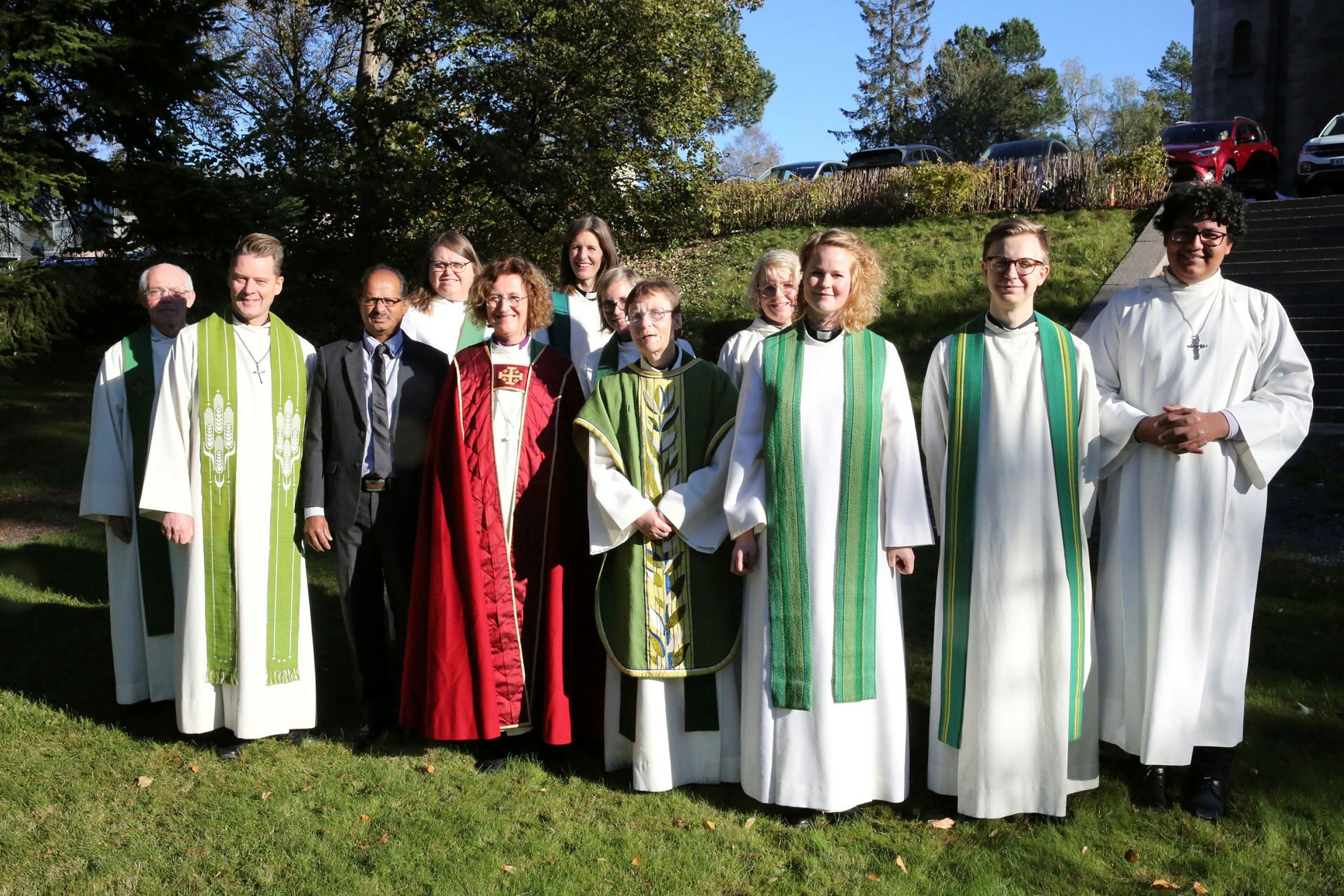 SAMLET FLOKK: Biskop Kari Veiteberg satte pris på alt det arbeidet prost Øyvind Stabrun, sokneprest Tone Marie Falch og alle de andre i Grorud menighet la ned i forberedelsene til bispevisitasen og gjennomførelsen av den. Etter den avsluttende bispevisitasgudstjenesten samlet de seg til et felles gruppebilde. Foto: Rolf E. WulffBilde 1 av 5