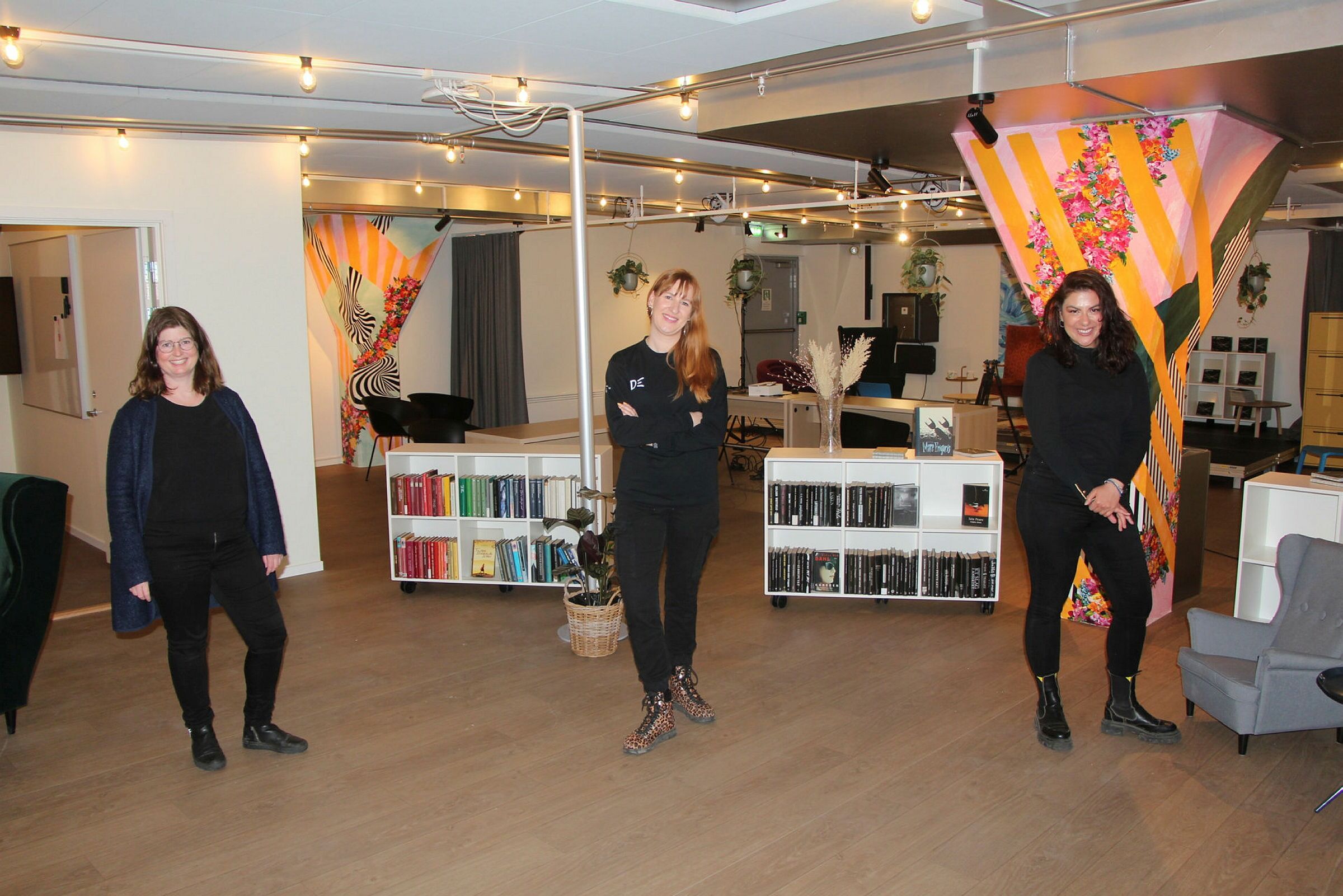 LINDERUD: Deichman har åpnet en midlertidig filial på Linderud senter. Etter planen skal beboerne på Linderud være med på å utvikle biblioteket når det gjelder brukertjenester og hvordan biblioteket skal bli seende ut. Her med Mari Boysen, Ragnhild Stuler og Nesteren Hasani. Foto: Sindre Veum ApnesethBilde 1 av 1