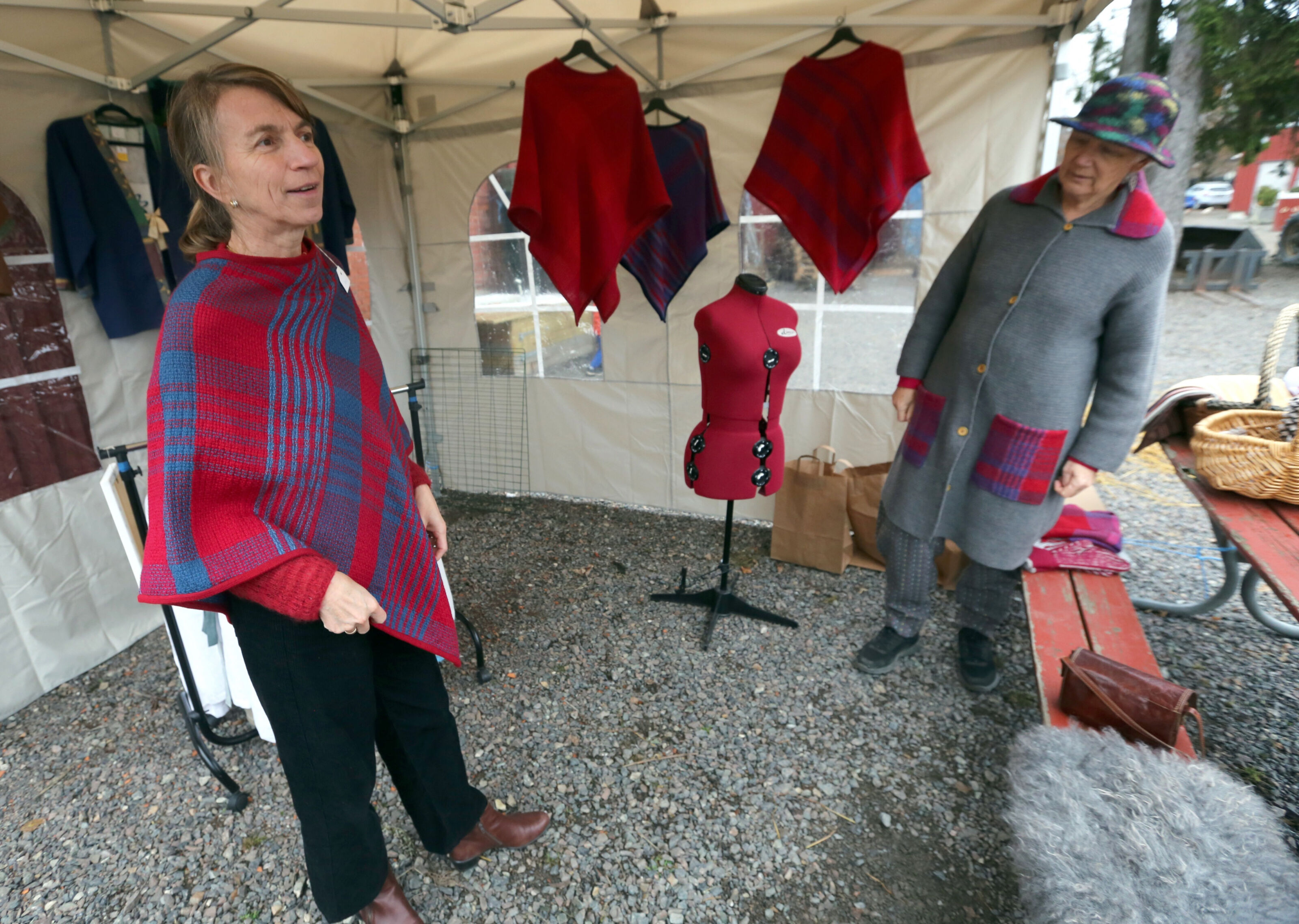 I teltet utenfor låven på Øvre Fossum gård, hvor Østre Aker Husflidslag arrangerer sitt store husflidshøstmarked, står to søstre og diskuterer om den ene av dem skal kjøpe en poncho eller ikke. Argumenter både for og imot flyr gjennom lufta.