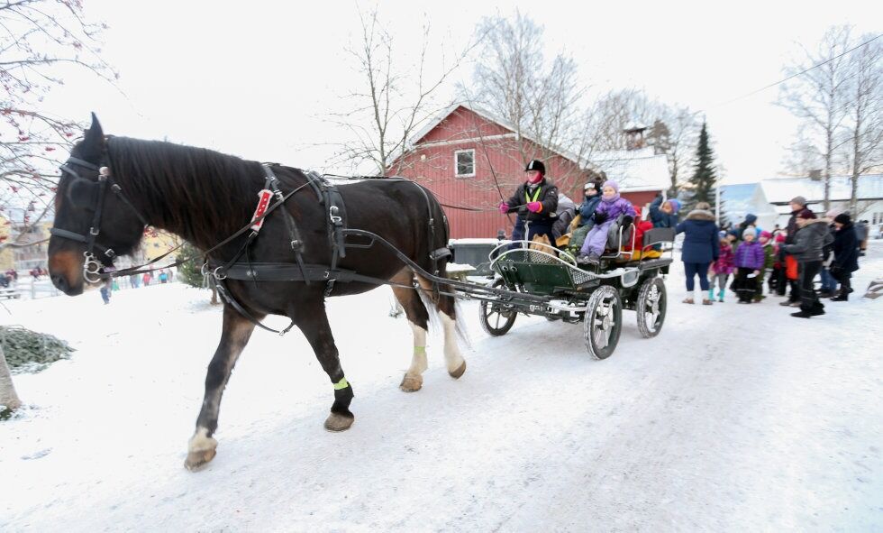 Det var hun som ledet Lillebror rundt da alle som ville fikk ri på han i en av innhegningene på gården. Happy Feet (10) har heller ikke noe imot å ha unger på ryggen. Men i tillegg til å få ri på Lillebror og Happy, kunne man også få bli med på en tur med hest og vogn. Den oppgaven var det Kingsey som tok seg av. En stor og stolt shirehest med massevis av krefter til å trekke en fullsatt vogn.