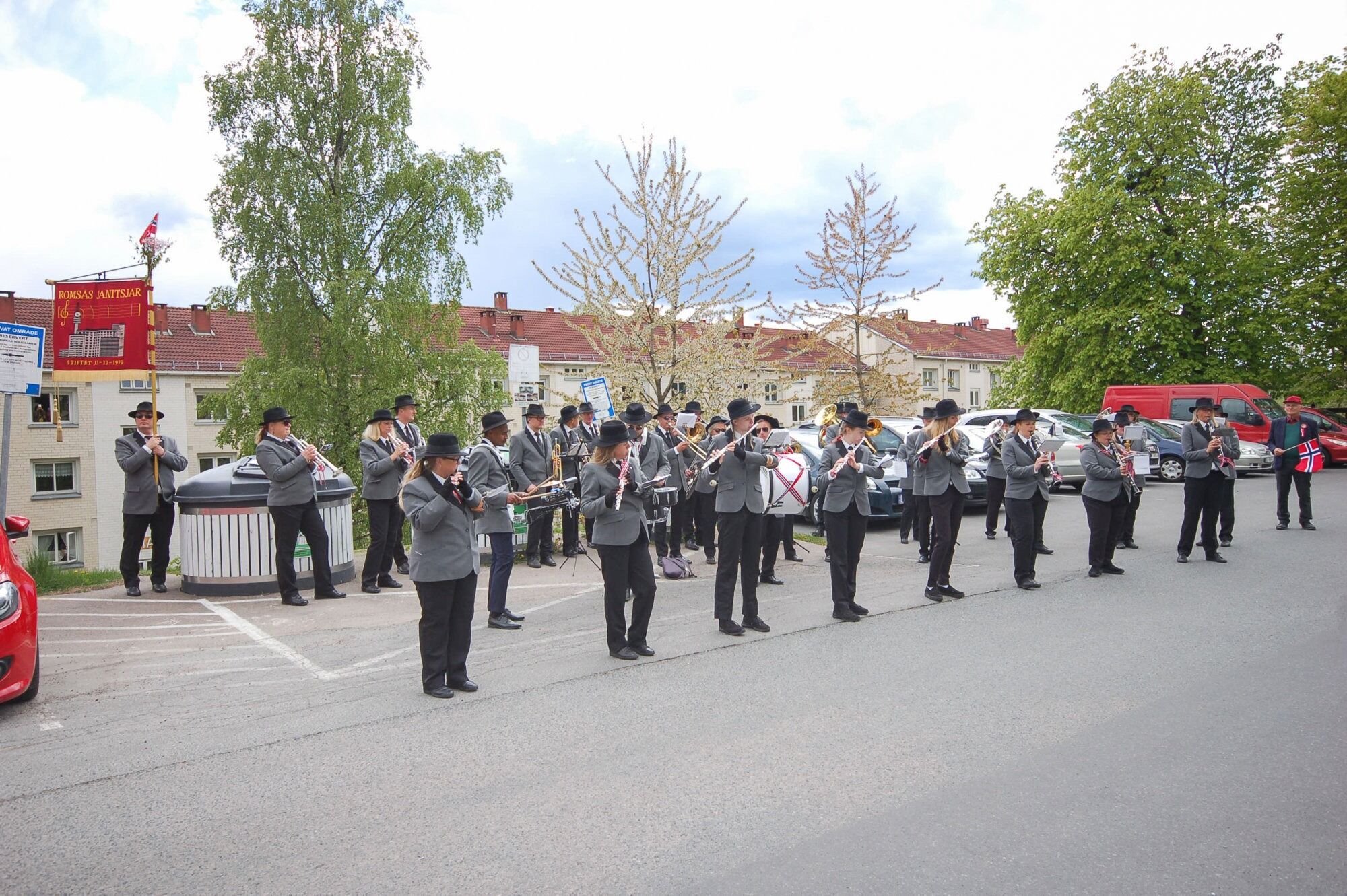 Det er ikke bare folk på Romsås og de trofaste tilhørerene som møter på konsertene til Romsås Janitsjar. Det kom klart til syne – og hørtes – da korpset på ettermiddagen 17. mai gjestet borettslagene på Sletteløkka og deretter Veitvetveien/Veitvetstubben.