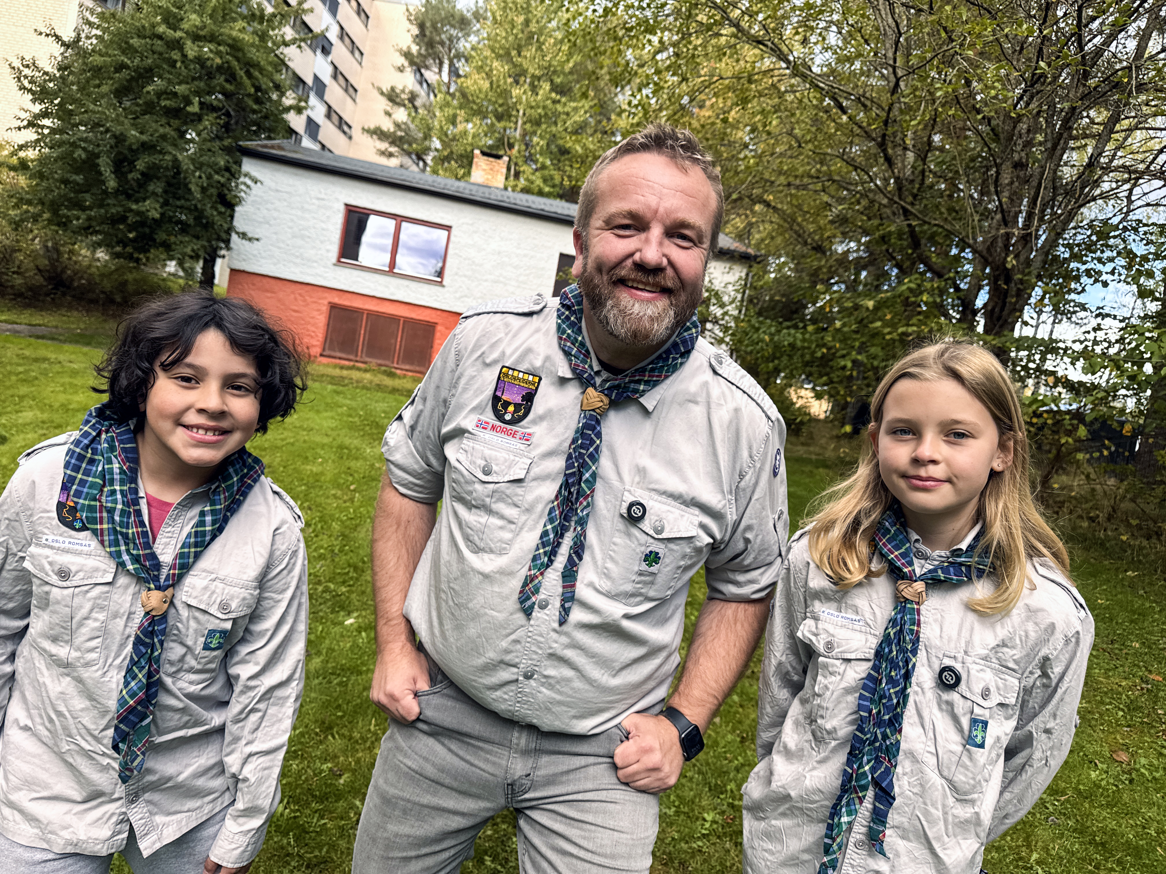 ROMSÅS-SPEIDERNE TAR OVER: Her, midt mellom blokkene på Romsås, står Eikatun. 8. Oslo Romsås speidergruppe har nå kjøpt bygget, som skal bli speiderhus i fremtiden. Speiderleder Anders Røberg-Larsen har tatt med Leandro (8) og Tilde Sofie (11) til Romsås for å vise dem huset.Bilde 1 av 2