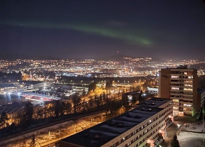 I helgen kunne man observere nordlys på himmelen i Groruddalen. Orlando Bernal tok dette bildet fra balkongen sin på Trosterud. – Vi ble veldig begeistret.