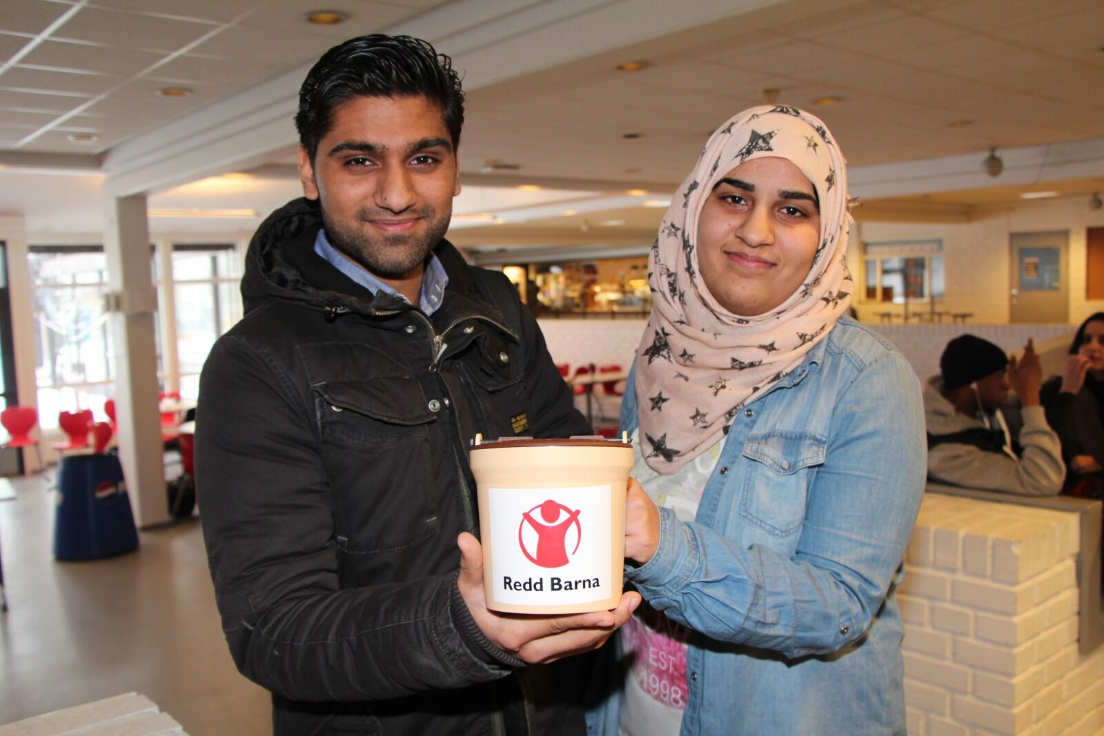 GIVERGLEDE: Elevrådsleder Zarmeen Abid (t.h, 18) og nestleder Sufian Ali (19) inviterer til solidaritetskveld på Stovner videregående skole i morgen. Kvelden er en videreføring av fjorårets arrangement. I år går inntektene til Redd Barnas arbeid for barns rettigheter i Gaza. Foto:Bilde 1 av 1
