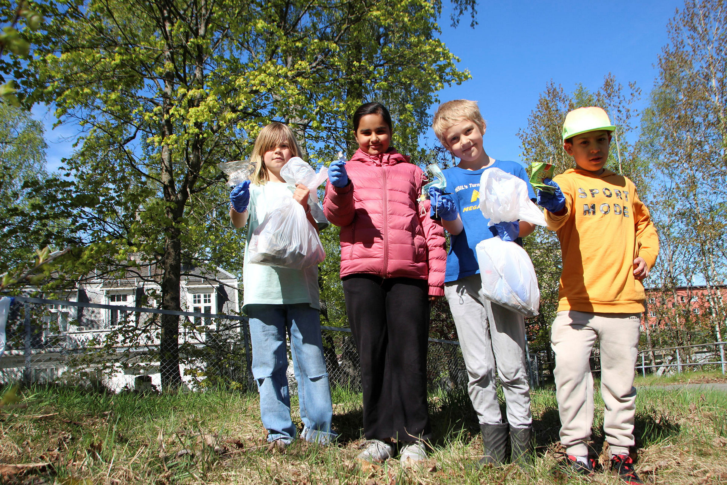 4. trinn på Grorud skole dukket opp med hansker og søppelposer utenfor avishuset mandag morgen. Det er nemlig tid for Rusken på skolen, og alle elevene bidrar.
