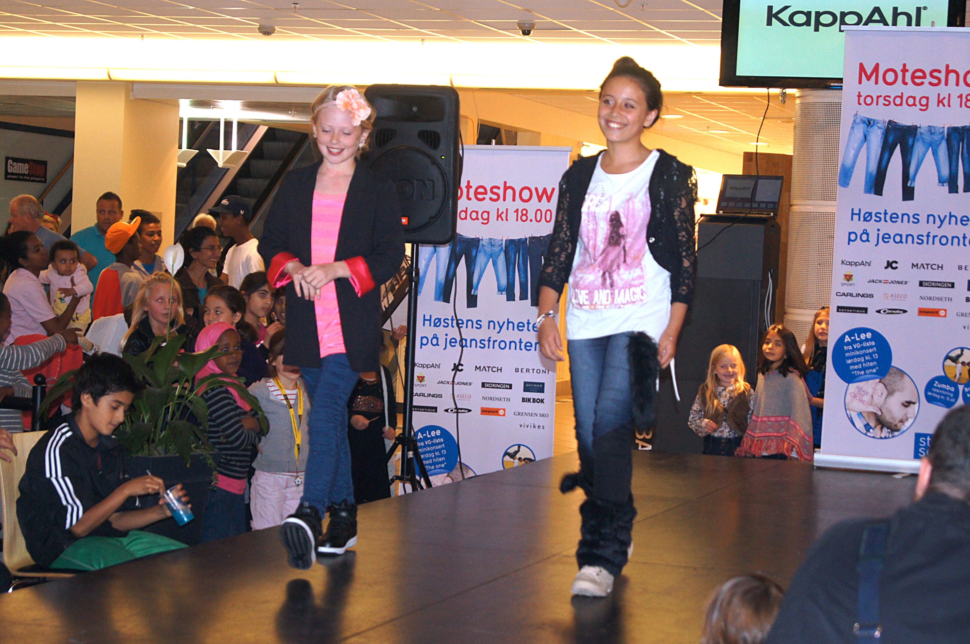 Stovner Senter arrangerte moteshow med lokale modeller. Der ble den nyeste jeansmoten vist fram til glede for de frammøtte.