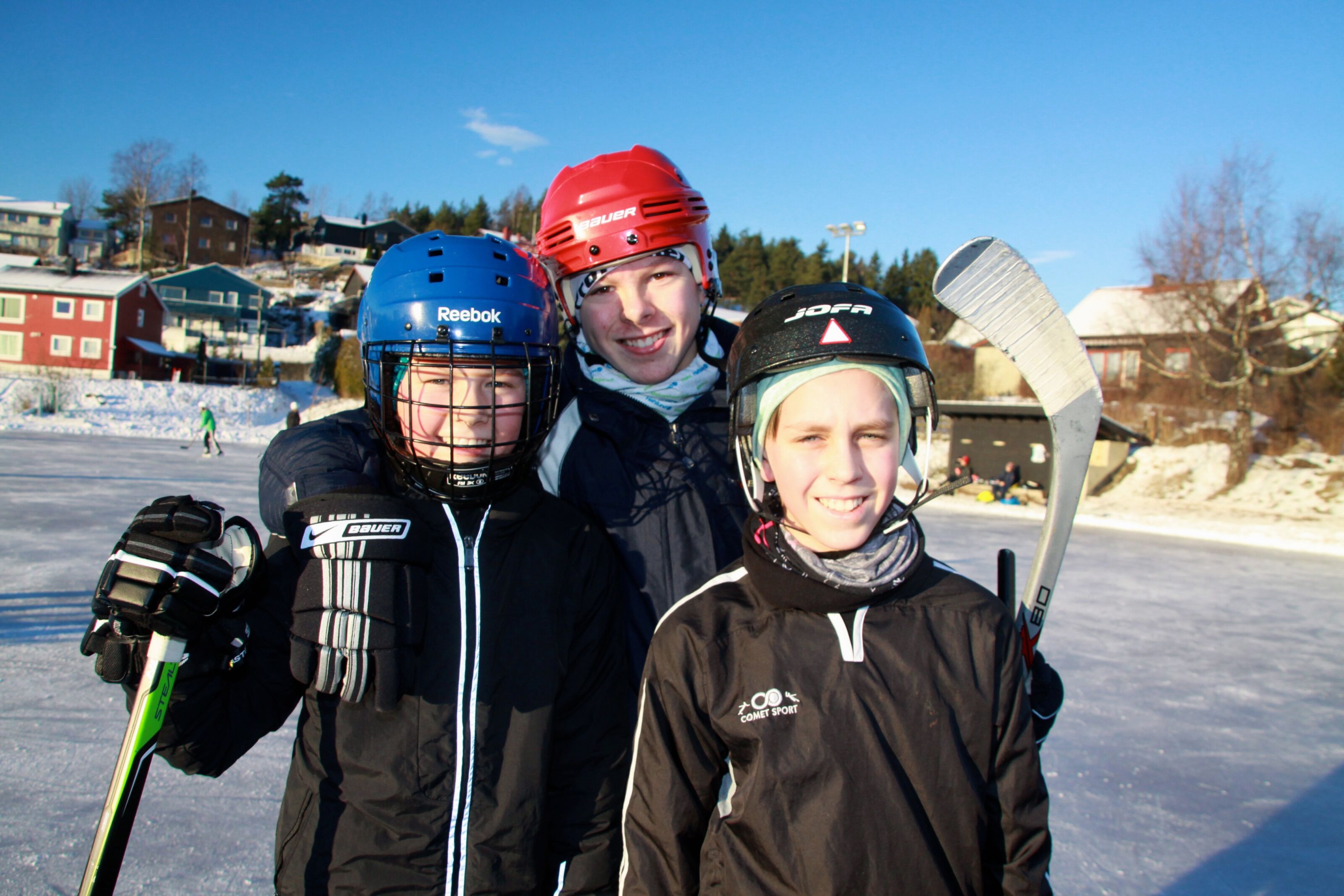 ALVORLIG MORO: Tolvåringene Fredrik (f.v.), Andreas og Kristian synes det er gøy å spille ishockey, men ser også et snev av alvor i leken ettersom det handler om å vinne. Foto:Bilde 1 av 2For å se disse bildene må du ha et abonnement Skøyte-trio ut på glattisen Elisabeth T. Faane og Mie Andersen Publisert 7. jan 15 kl. 14:00 Del på sosiale medier Del Facebook Twitter E-post Abonnement