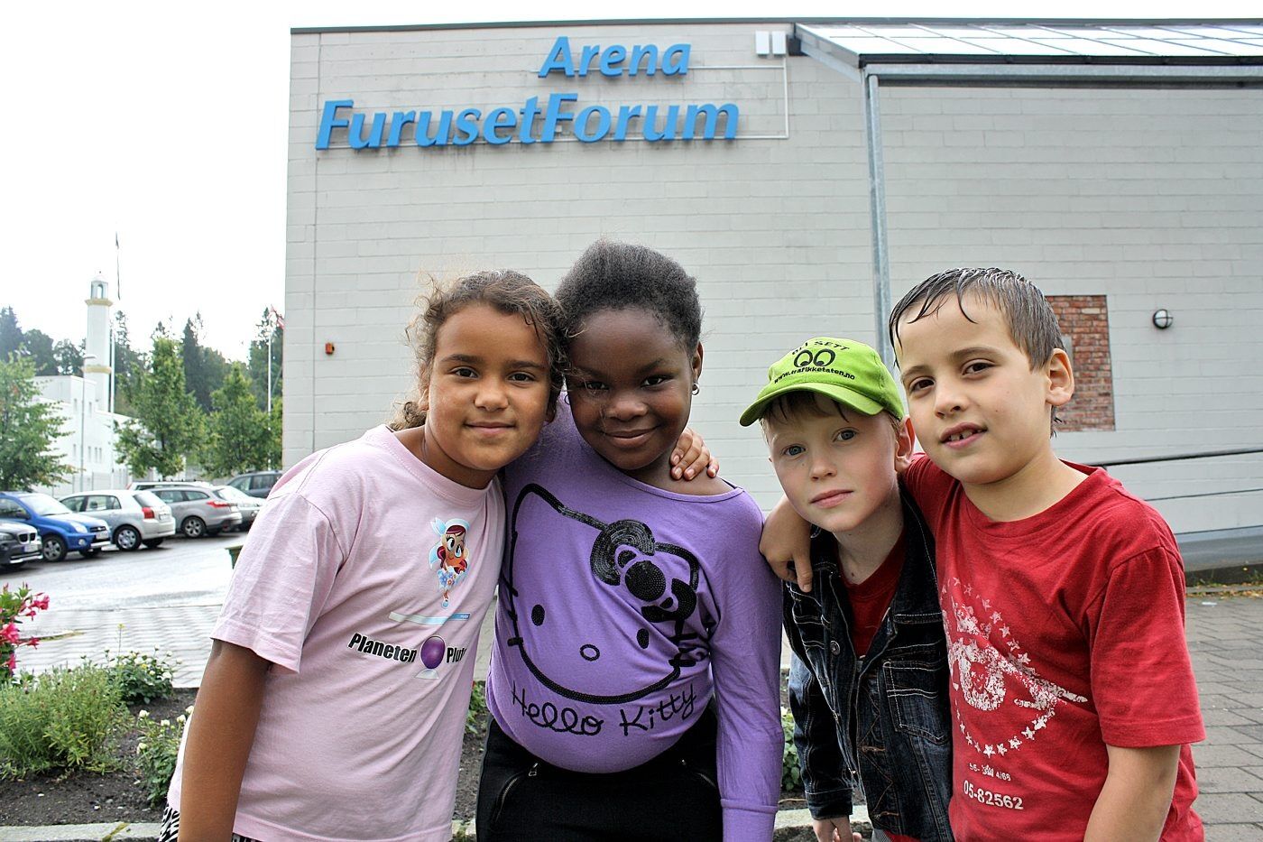Det var 200 idrettsglade barn som hadde samlet seg på allidretten i Furuset Forum. Mens Gabriel (7) og Jakob (7) synes svømming er best, er allidretten en oppvarming før venninnene Adriana (9) og Ashley (9) starter på håndballtreninga.