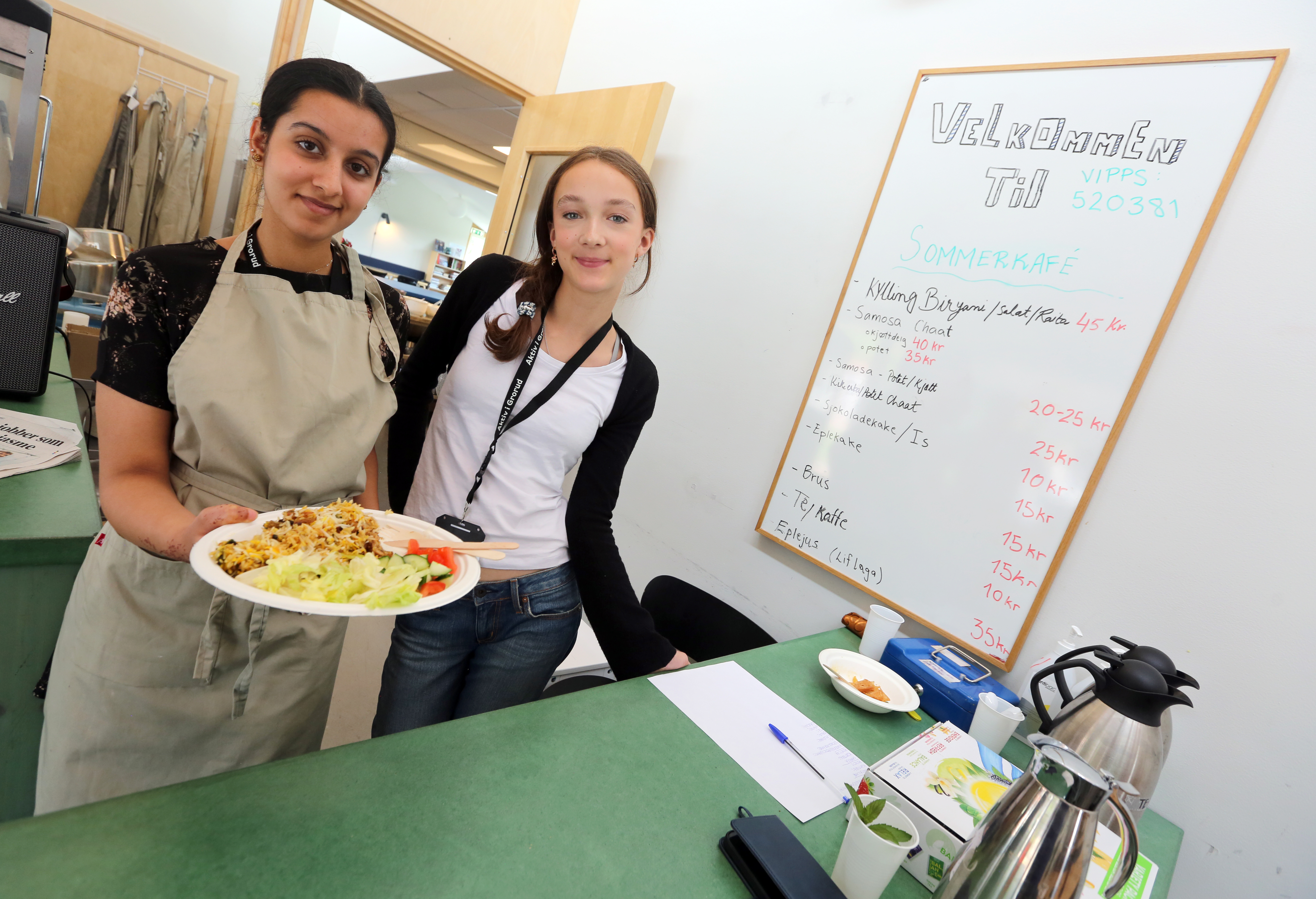 Agnes (14) og Aliza (17) har servert sin siste lunsj. Nå tar sommerkafeen en pause i fellesferien, før det kan fristes med nye spennende retter de to siste ukene i skoleferien.