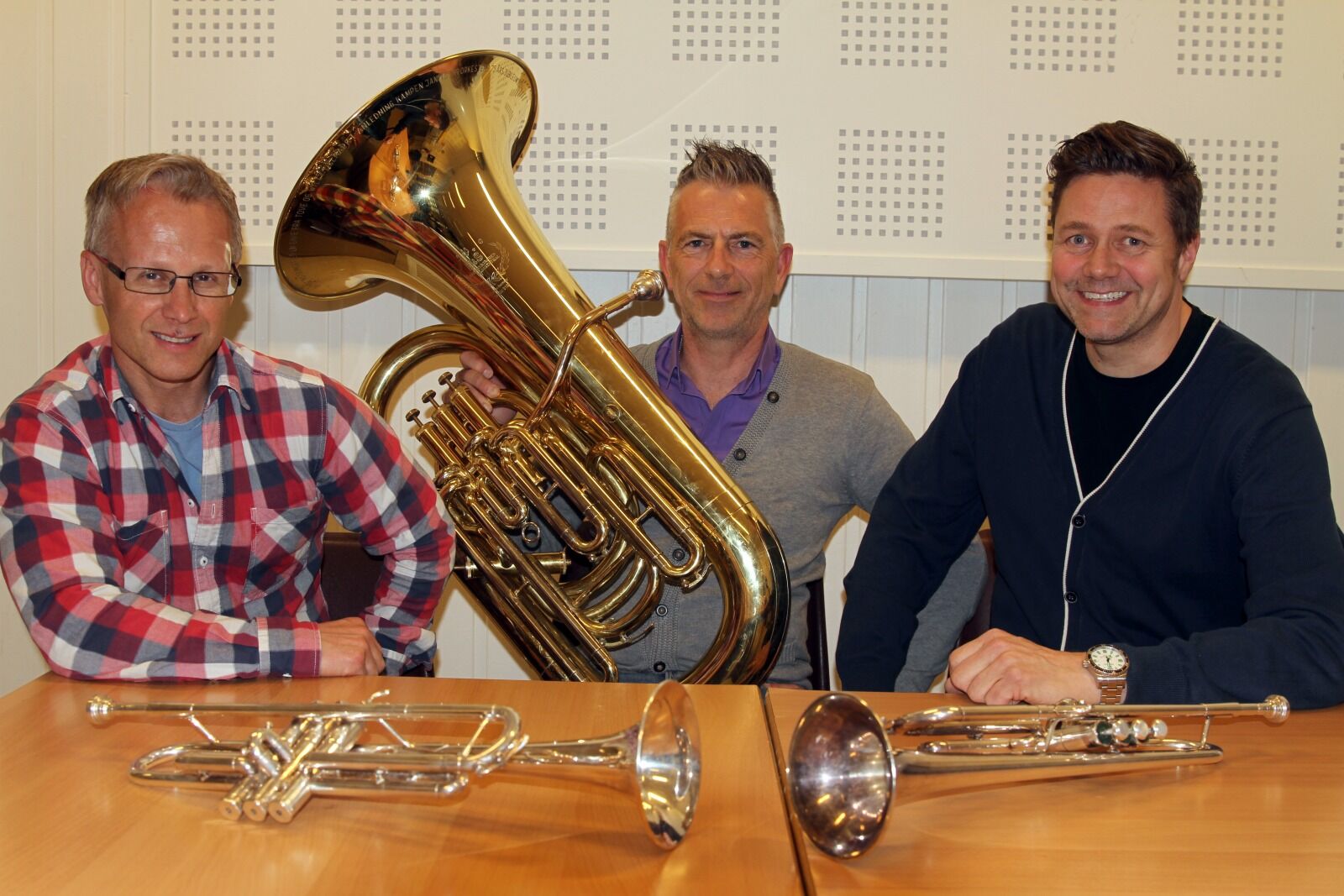SØKER MUSIKANTER: Formann i Kampen Janitsjarorkester, Stein Morten Lier (f. v), leder for musikkutvalget, Øystein Brenna og styremedlem Tom Tjærebråten søker nye musikanter til orkesteret. De har ligget på latsiden når det gjelder rekrutteringen. Nå må det tas grep for å sikre at en ny generasjon kommer inn. Foto:Bilde 1 av 1