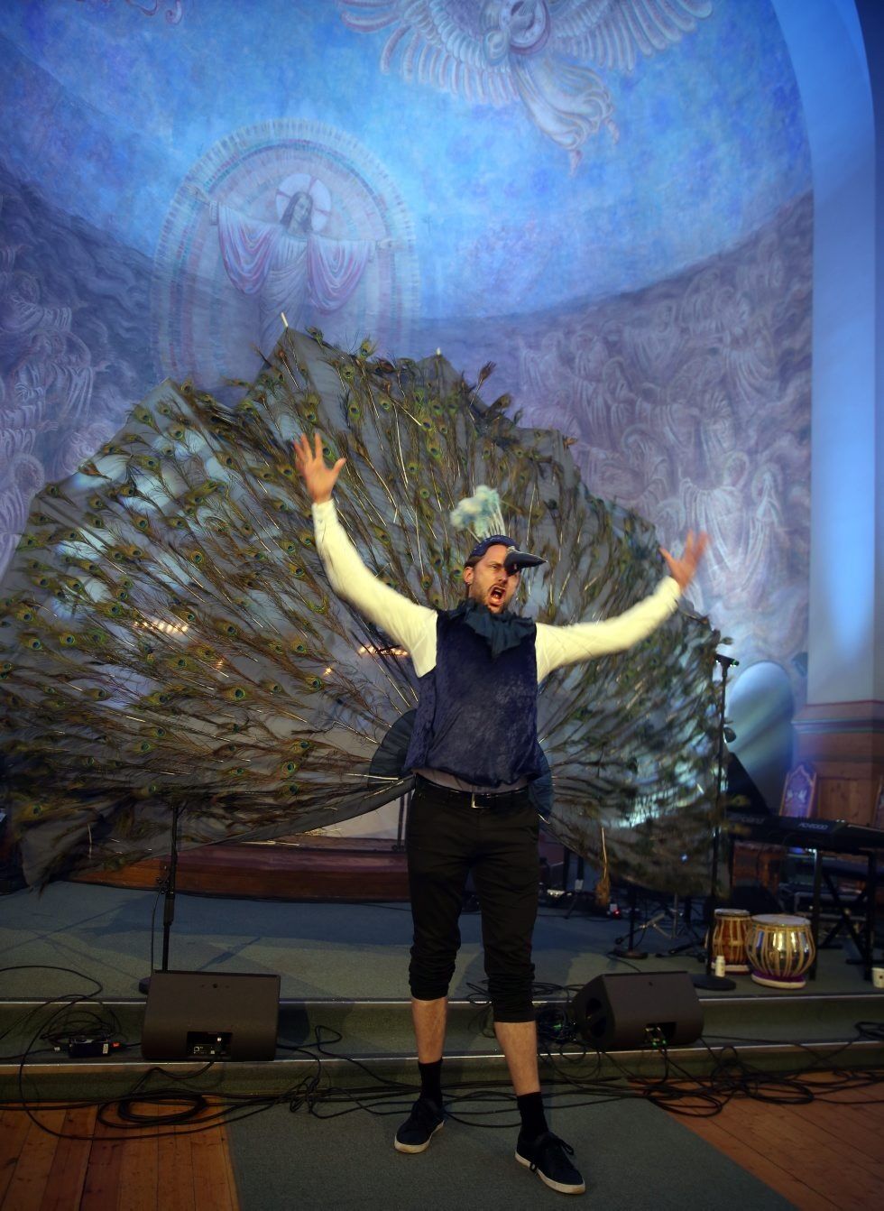 STERKE MENINGER: Anders Hoff fremførte først sitt nummer «den irriterte påfuglen», etterpå fremstod han ganske enkelt som Anders Hoff med soleklar tale om hvilke store konsekvenser det vil få for nærmiljøet å legge ned en kirke. Foto:Bilde 1 av 13