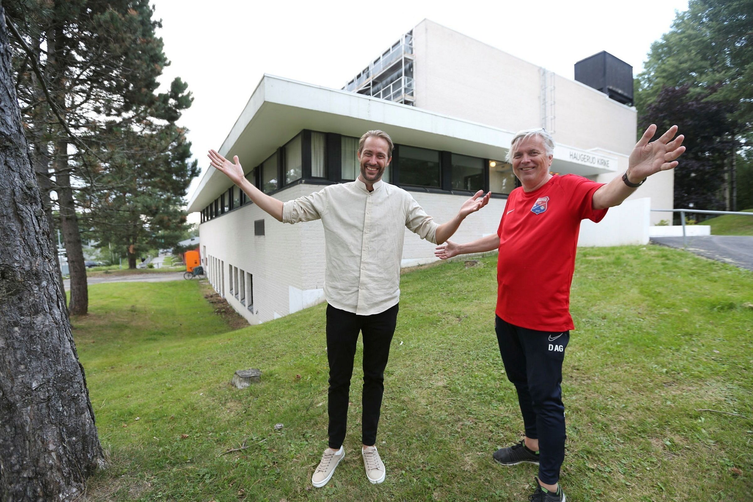 Vi står foran Haugerud kirke og venter på nevnte Anders, mest kjent for sin rolle i humortrioen Raske Menn, og siden 2017 programleder for dansekonkurransen Skal vi danse på TV 2. En oppgave han også skal ha i årets sesong som starter senere i høst.