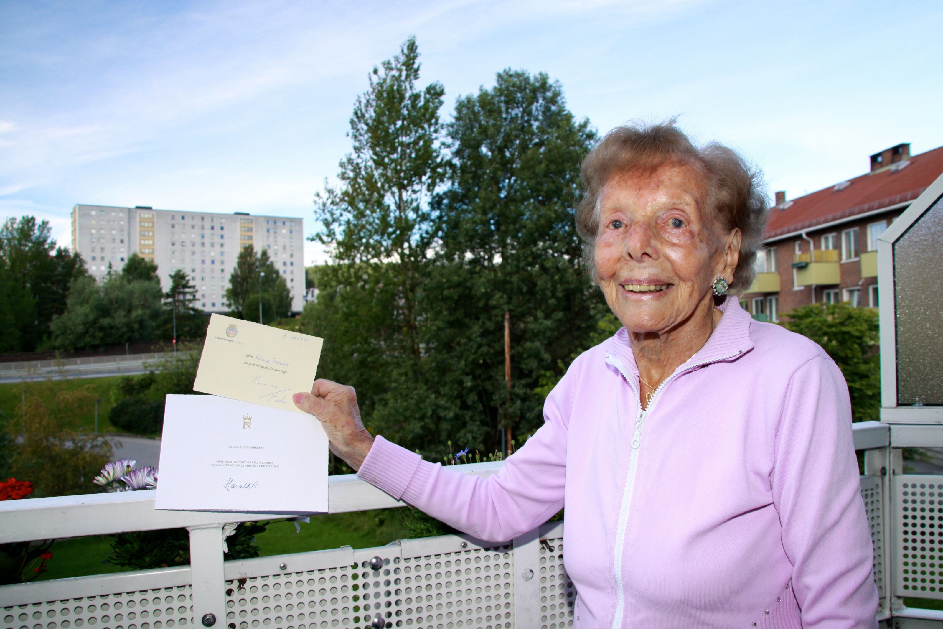 JUBILANT: Aslaug Thoresen har de siste 70 årene vært bosatt på Flaen. Her stortrives hun. På fredag rundet hun 100 år, og fikk da brev av både Kongen og ordføreren. Foto:Bilde 1 av 1 Spreke Aslaug rundet 100 Elisabeth Tobiassen Faane Publisert 3. aug 15 kl. 15:04 Del på sosiale medier Del Facebook Twitter E-post Abonnement