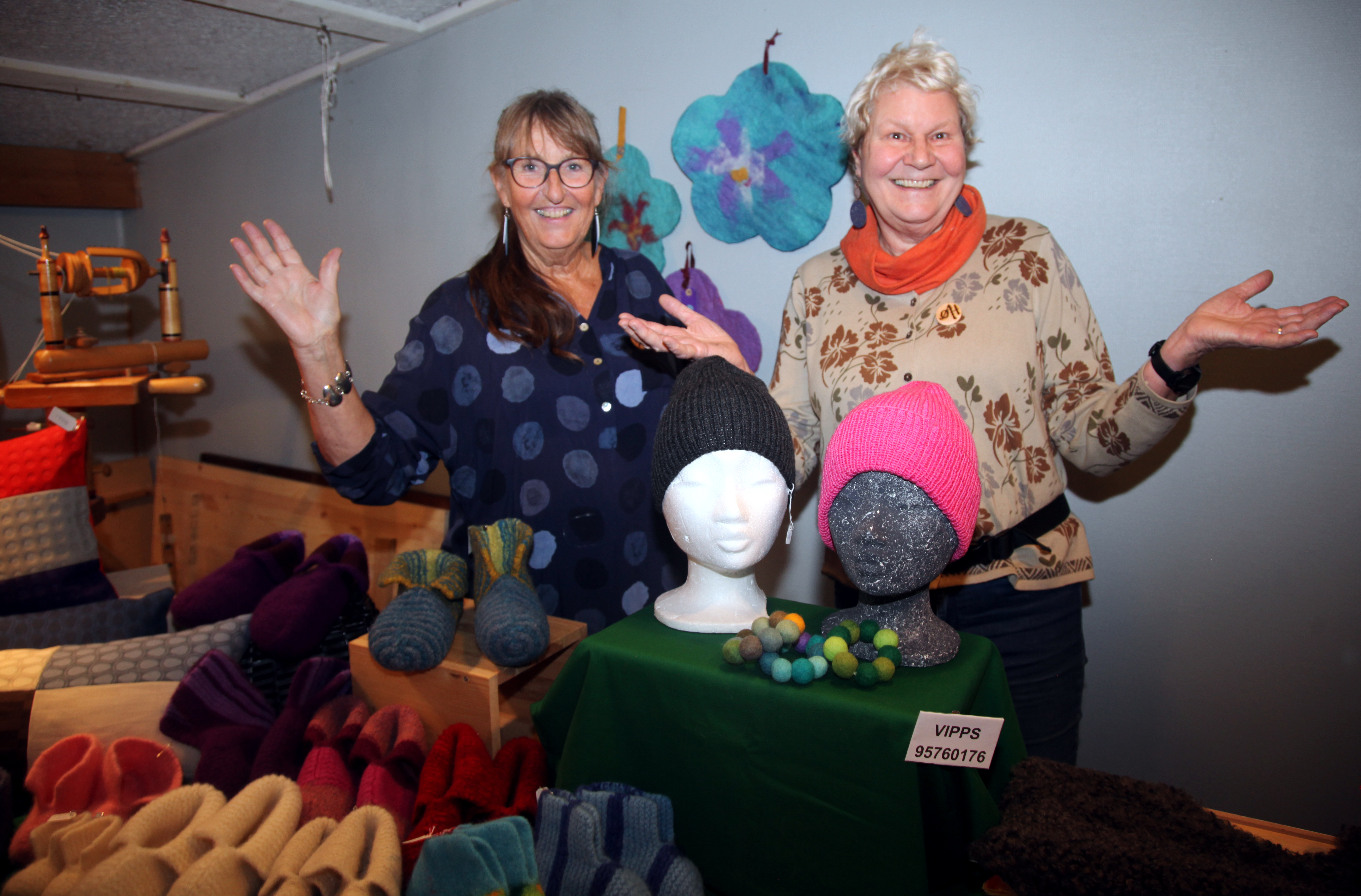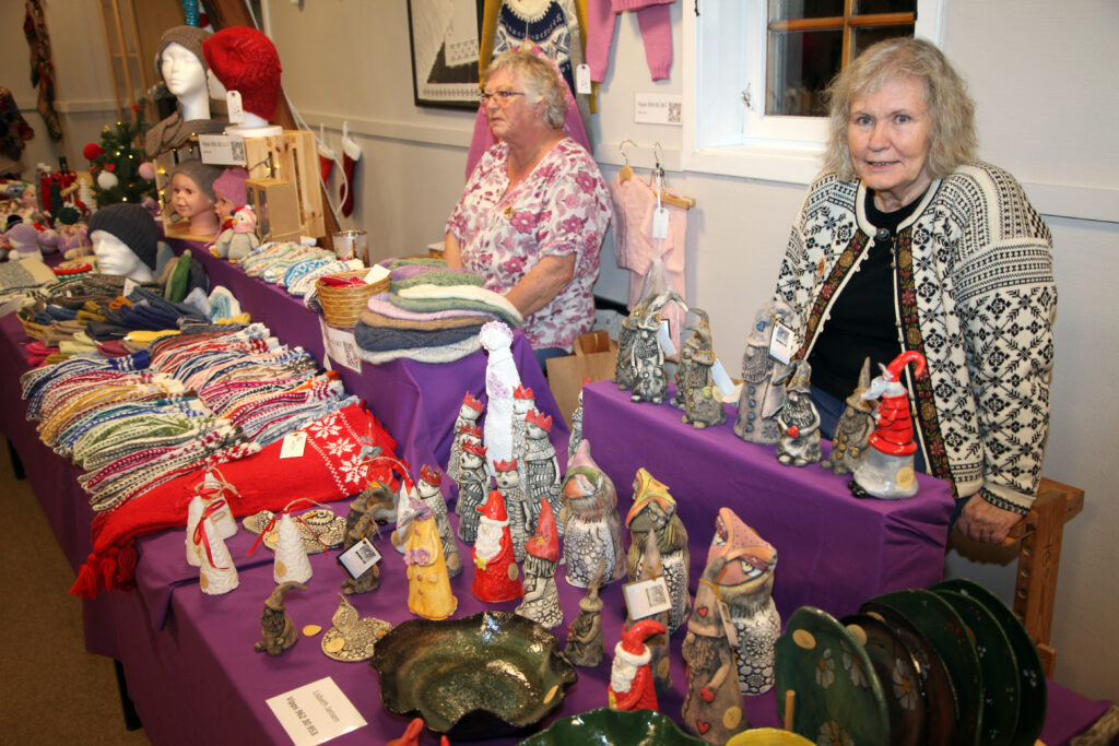 – Vi har kommet godt i gang, konstaterer de to blide damer kun en time ut i årets julehusflidsmarked.