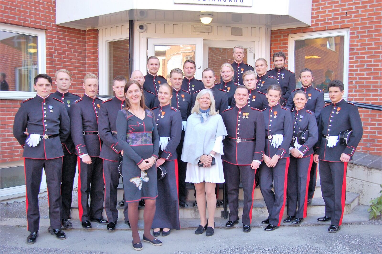 GJESTER OG VERTSKAP: Her står kulturleder Anita Madsen (mørk) og daglig leder Jaqueline Sæby (lys) foran sammen med alle sine kadett-gjester. Foto:Bilde 1 av 8