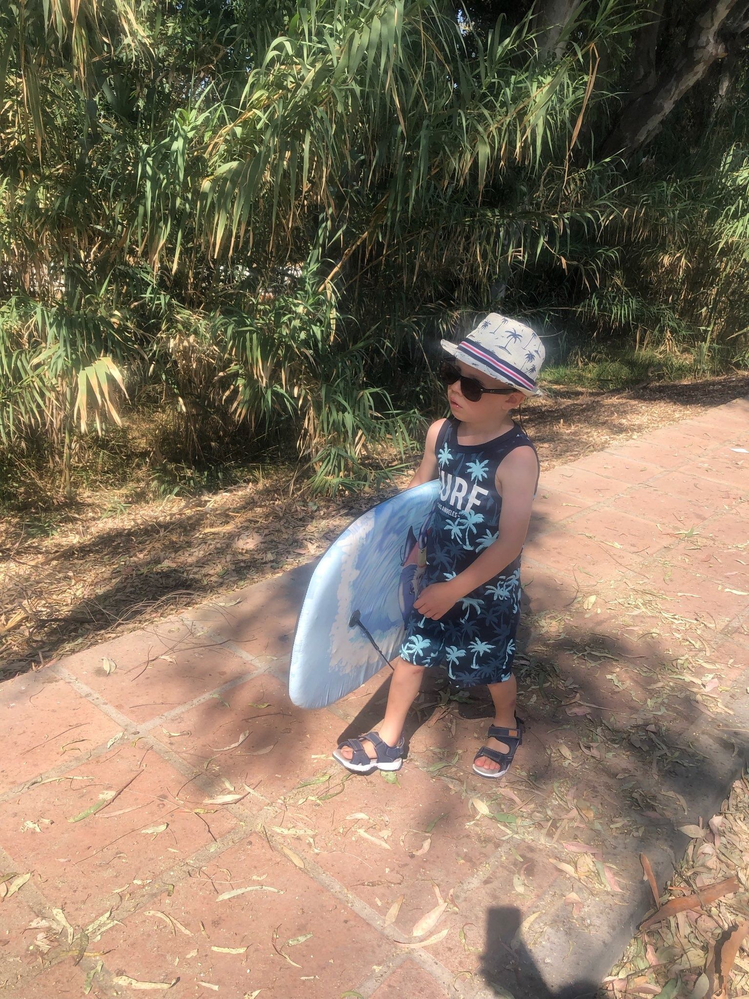 Han slenger seg på stråhattgjengen. Her er han i Spania (Marbella) på vei til surfing.